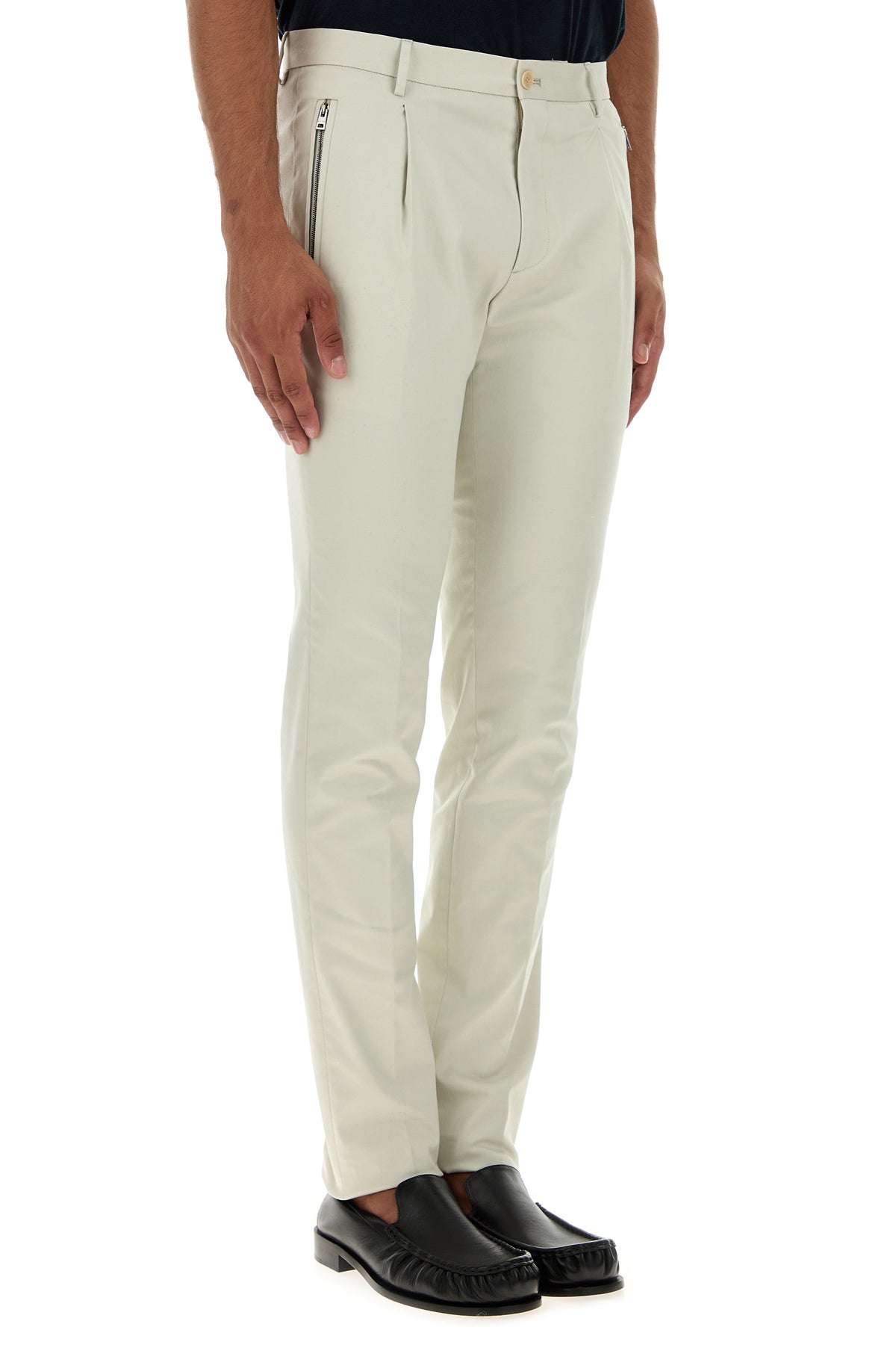 Pantalone realizzato in cotone stretch caratterizzati da pieghe invertite.