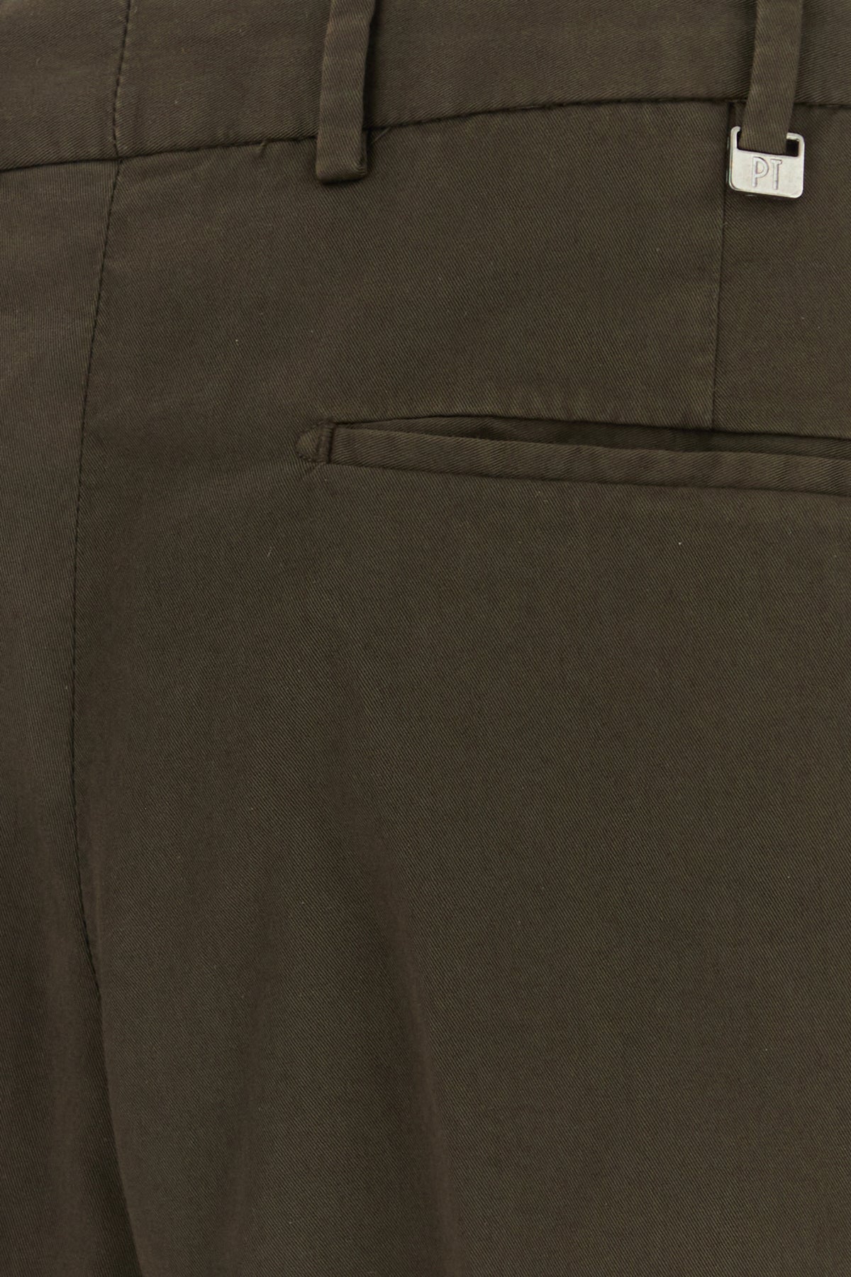 Pantalone realizzato in cotone stretch arricchito da targhetta metallica logata sul retro.