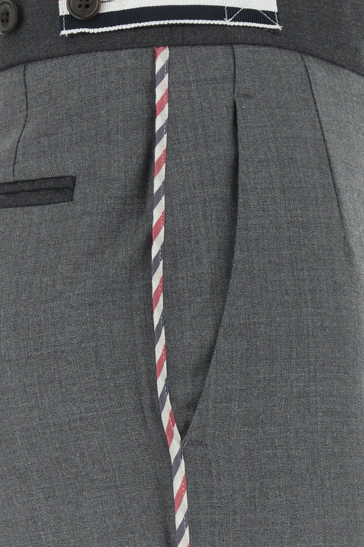 Pantalone realizzato in pura lana con particolari profilature arricchito da iconica etichetta tricolore sul retro.
