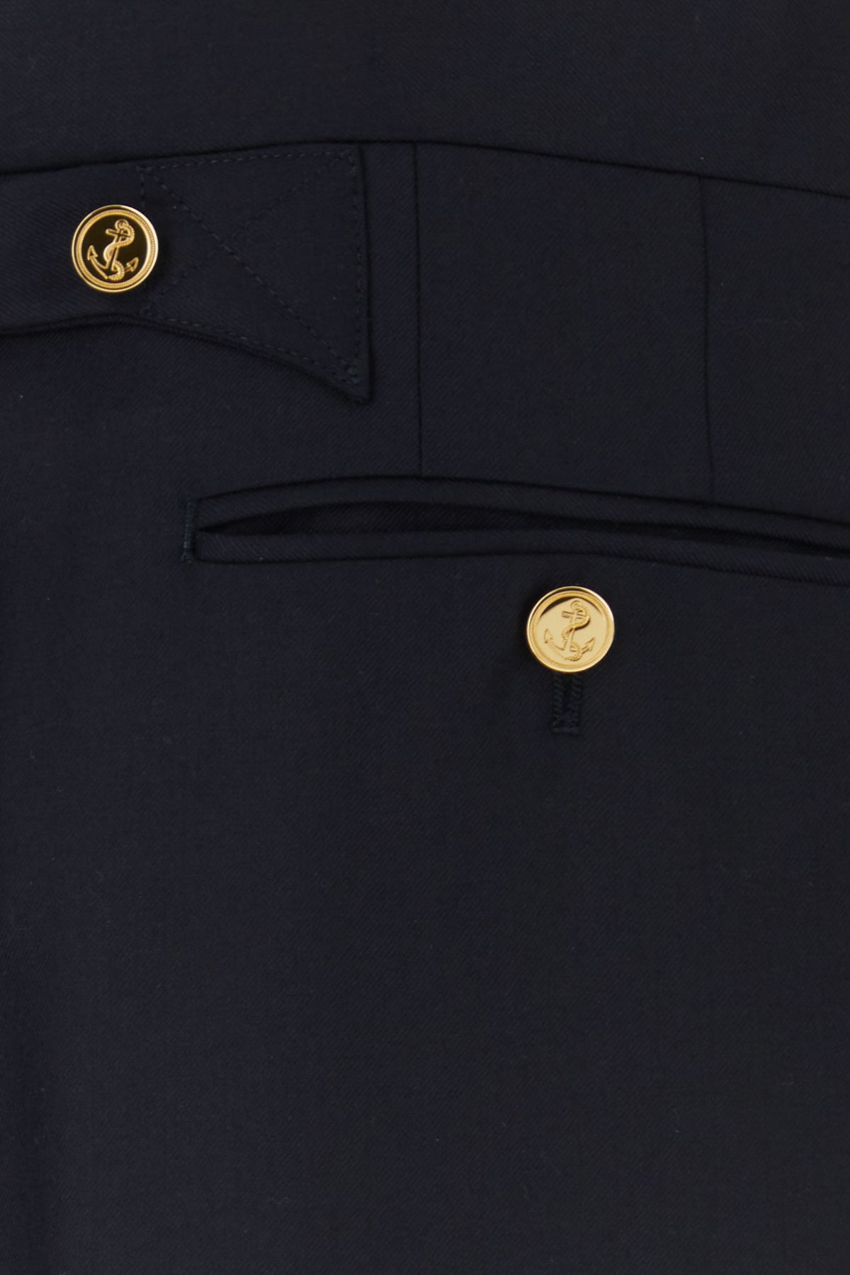 Pantalone realizzato in pura lana caratterizzato da pieghe centrali stirate arricchito da iconica etichetta tricolore sul retro.
