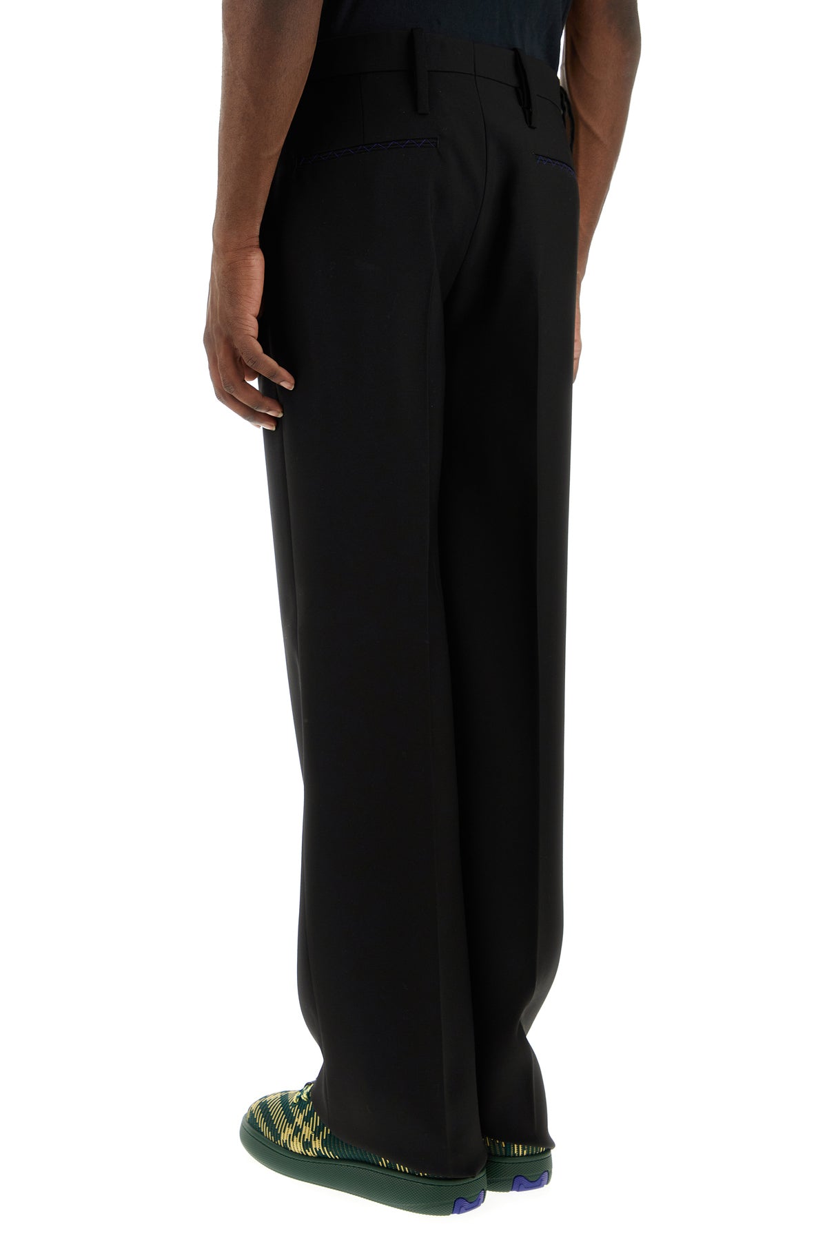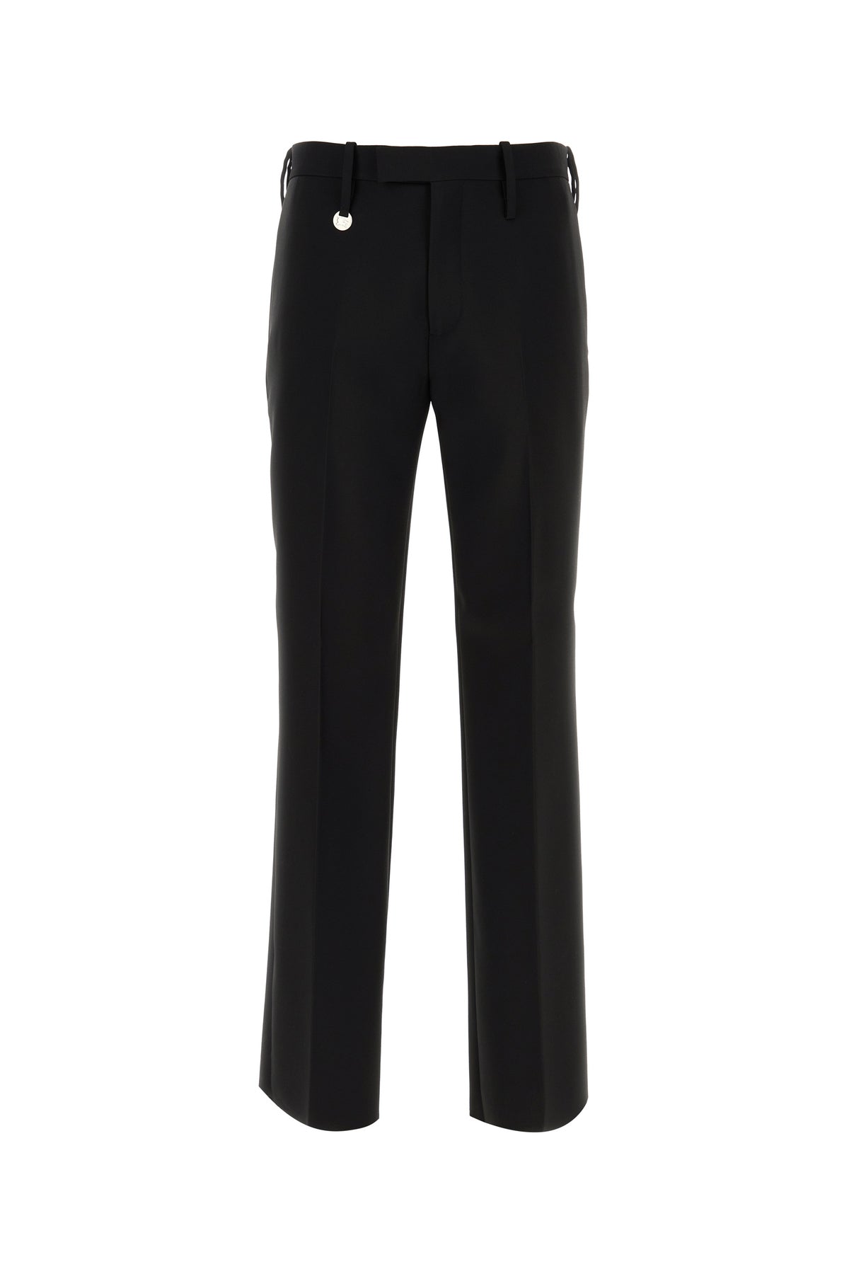 Pantalone realizzato in pura lana vergine caratterizzato da pieghe centrali stirate arricchito da dettaglio metallico logato sulla parte frontale.
