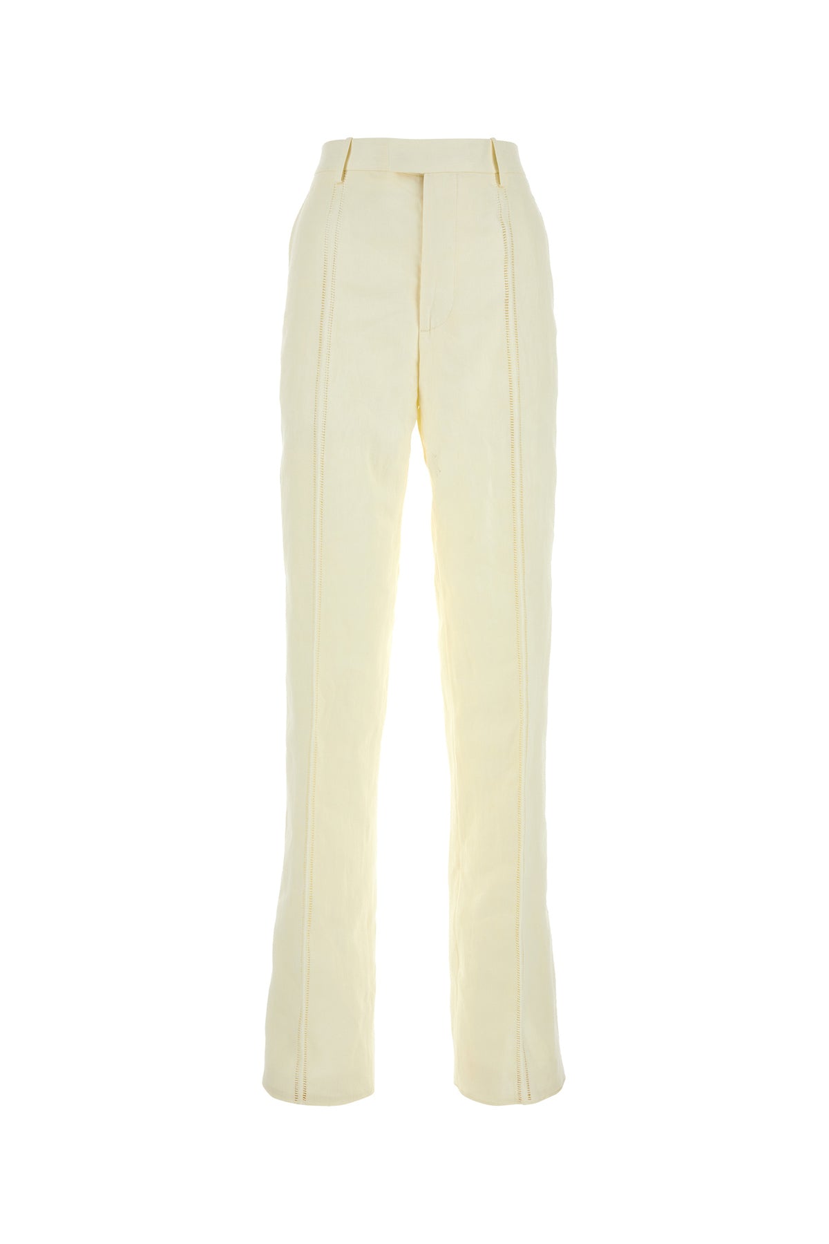 Pantalone realizzato in puro lino caratterizzato da dettagli cut-out sulla parte frontale.