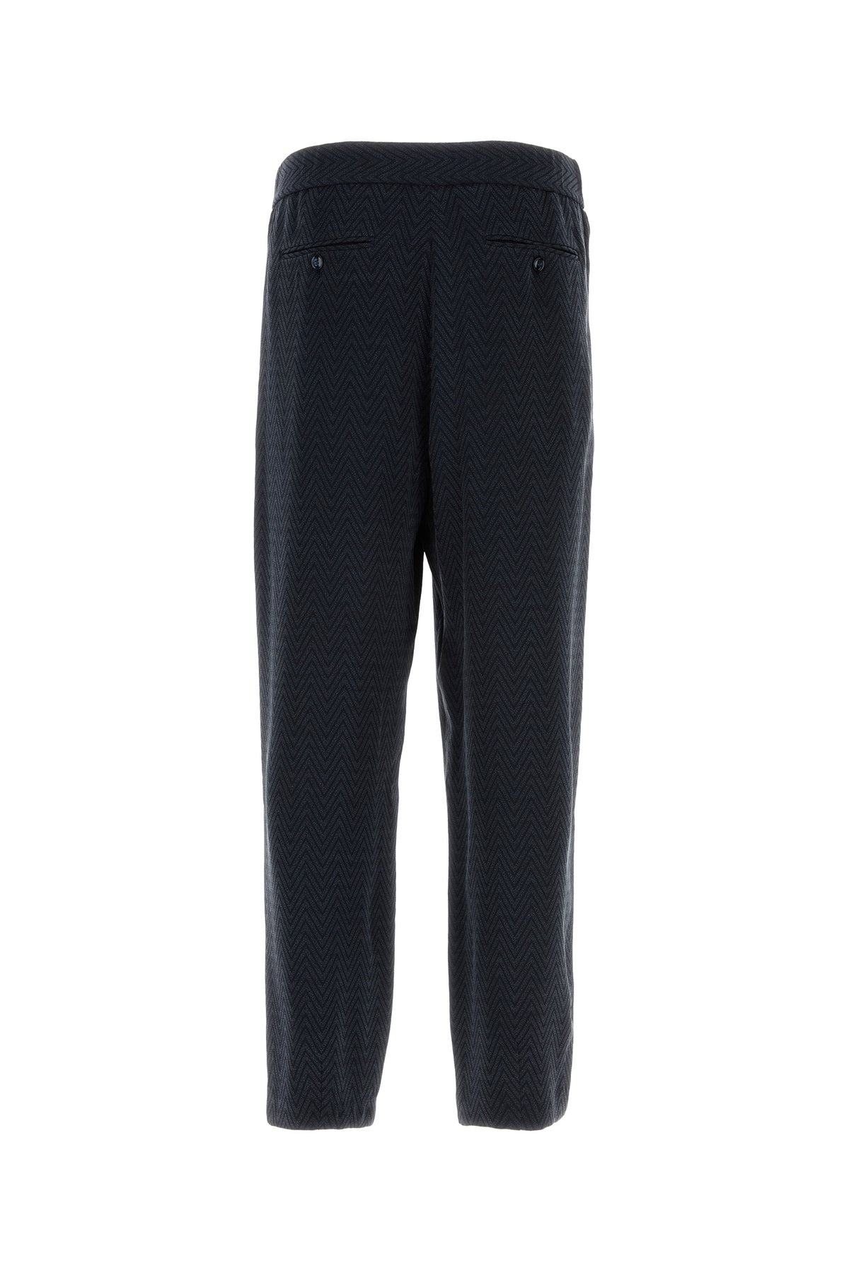 Pantalone realizzato in misto cupro caratterizzato da ricamo a motivo chevron su tutta la superficie.