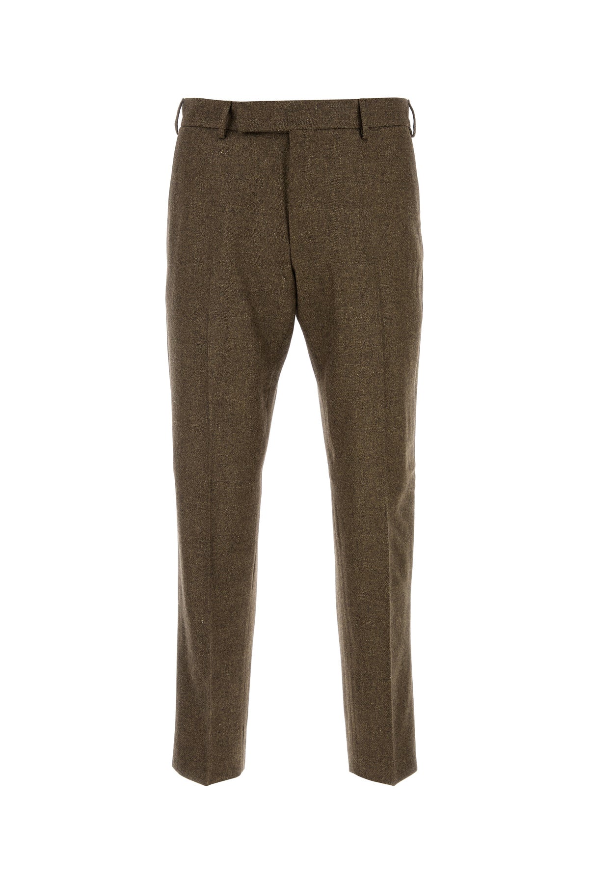 Pantalone realizzato in misto lana stretch caratterizzato da pieghe centrali stirate.
