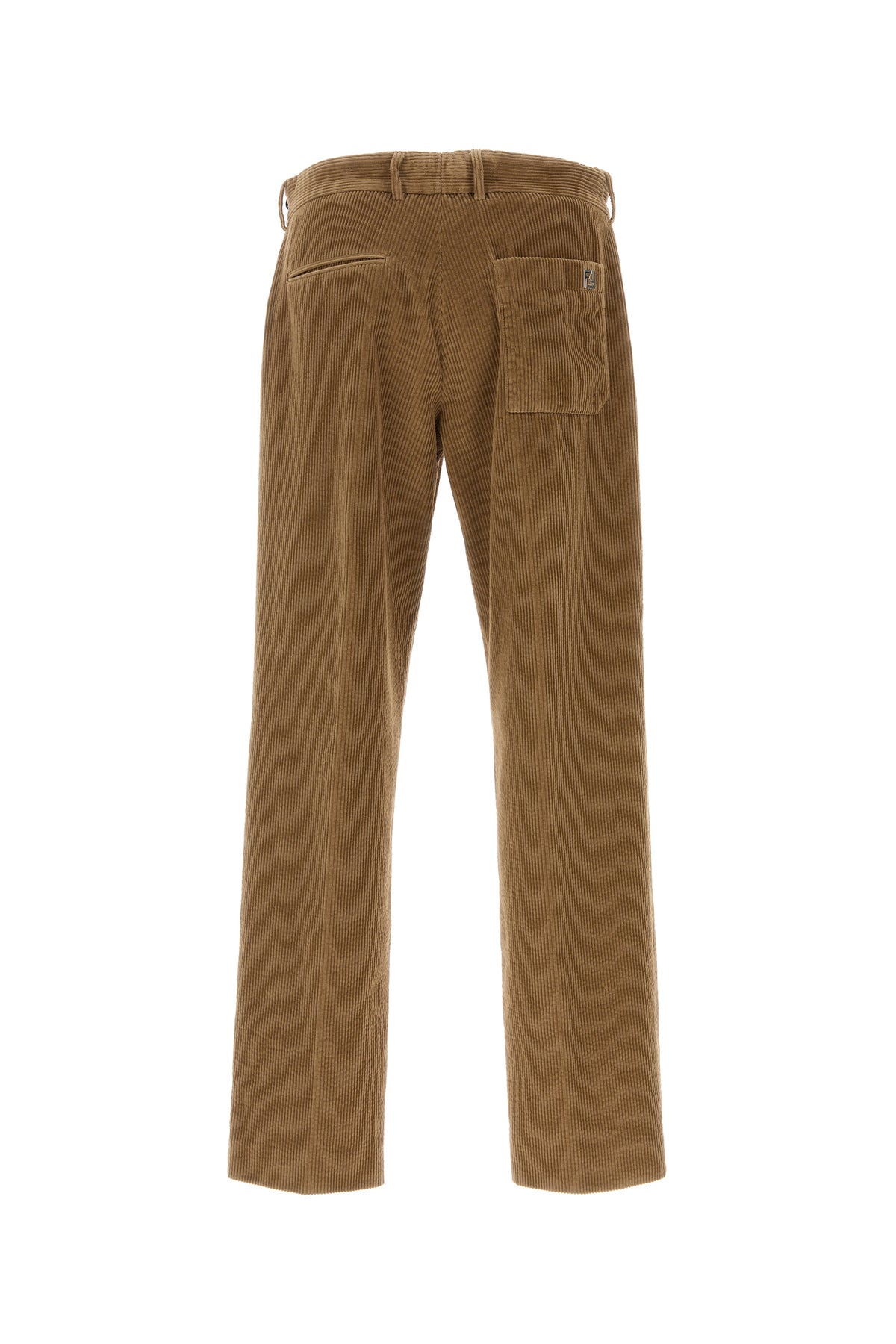 Pantalone realizzato in velluto a coste di puro cotone arricchito da dettaglio metallico FF sul retro