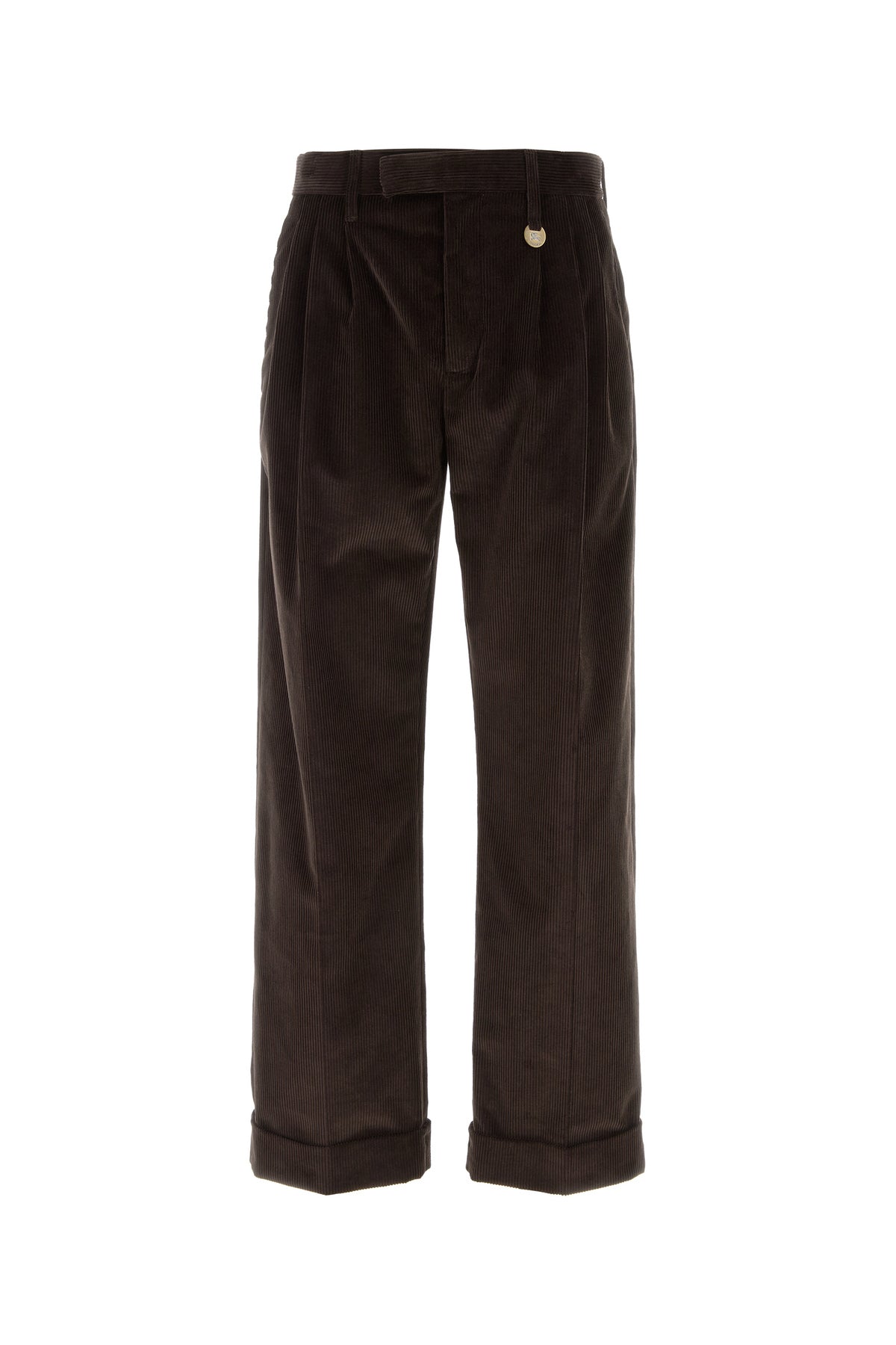 Pantalone realizzato in velluto a coste di puro cotone caratterizzato da passanti in vita per la cintura.