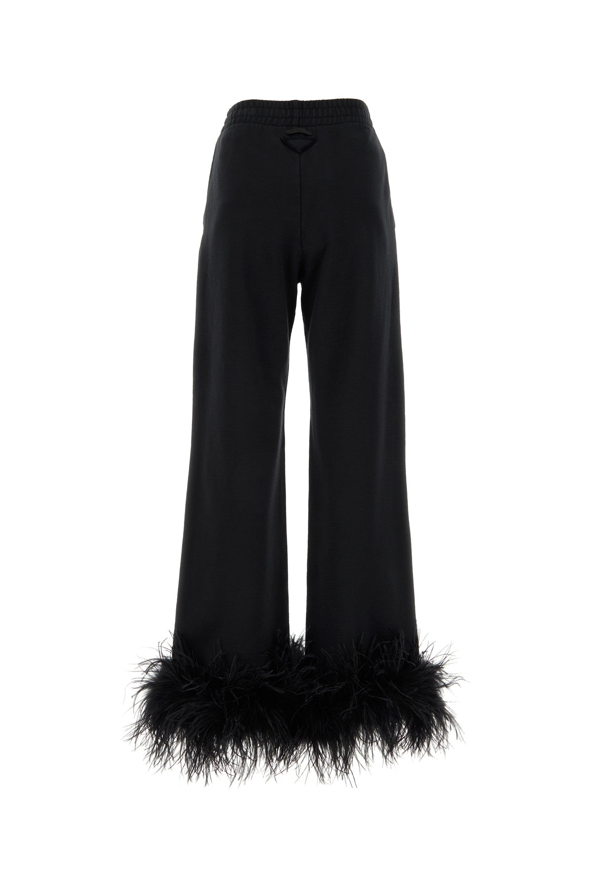 Pantalone jogging realizzato in puro cotone arricchito da inserti in piume tonali sul fondo e iconico triangolo tonale sul retro.