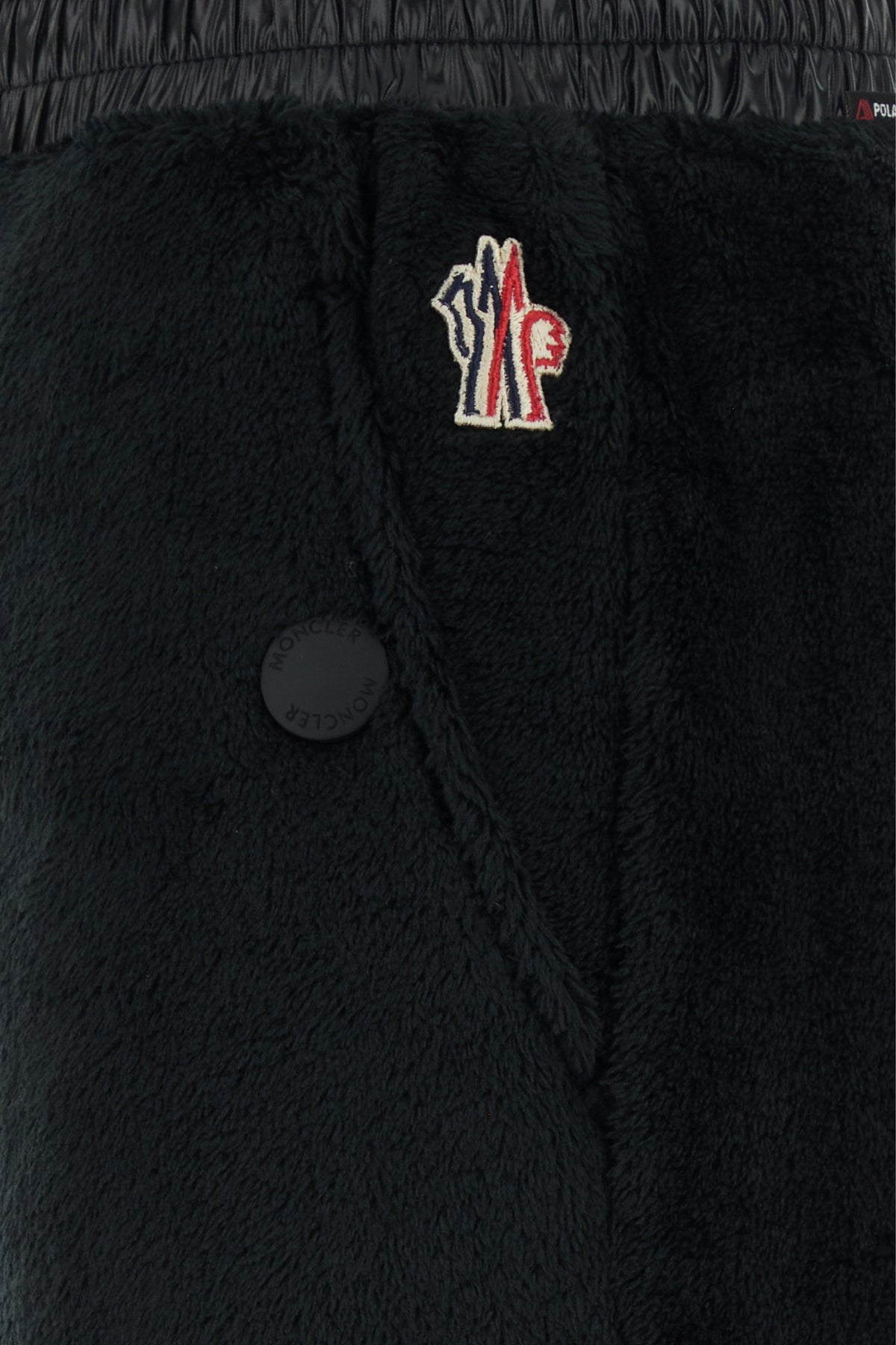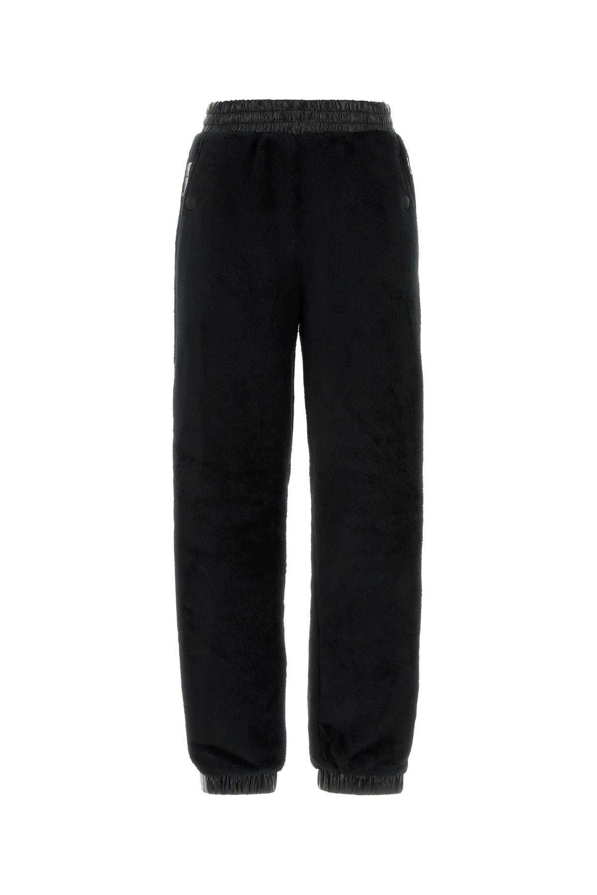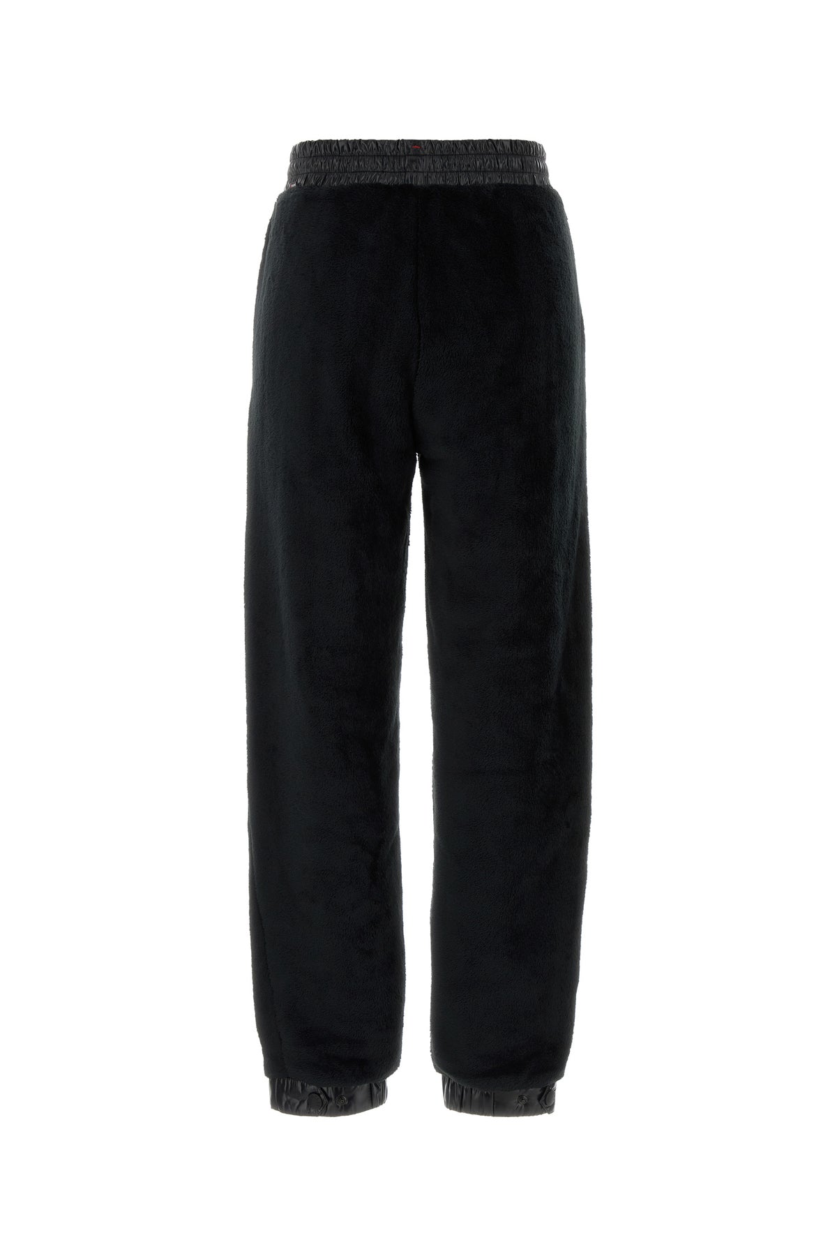 Pantalone realizzato in eco pelliccia arricchito da applicazione logata sulla parte frontale.