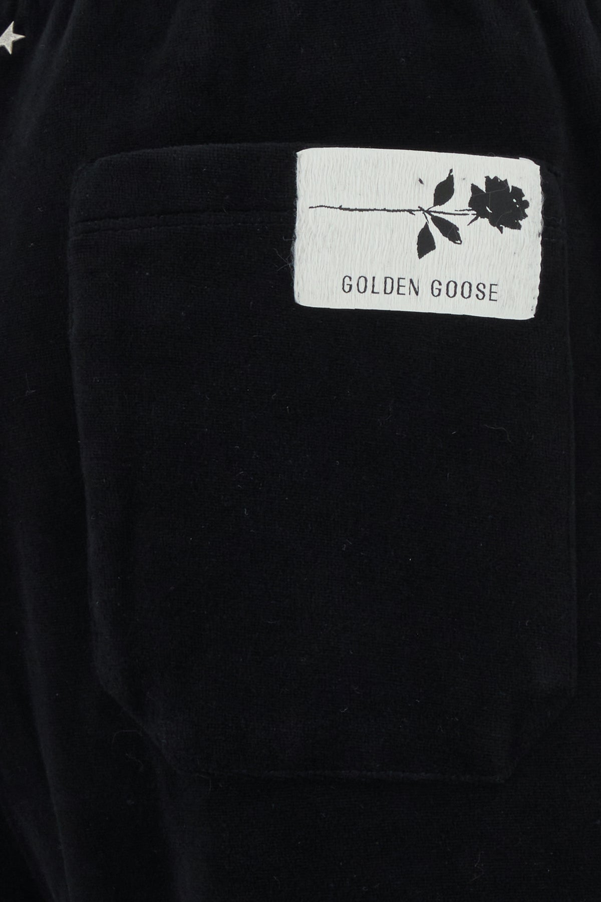 Pantalone jogging realizzato in velluto arricchito da iconici dettagli metallici Star ed etichetta logata sul retro.