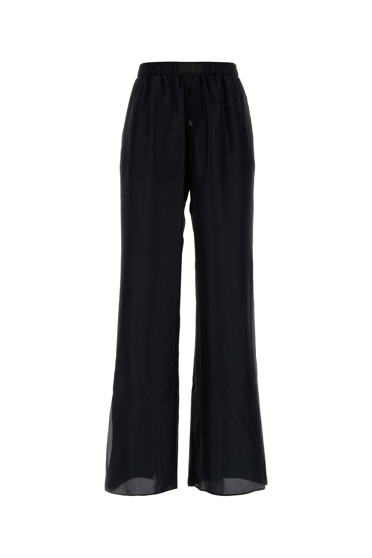 Pantalone pigiama realizzato in raso di pura seta caratterizzato da etichetta logata tonale sulla parte frontale e iconica cucitura a contrasto sul retro.