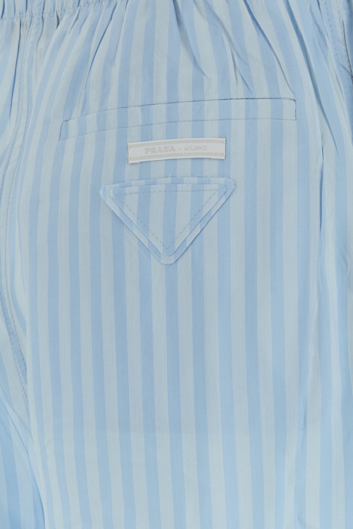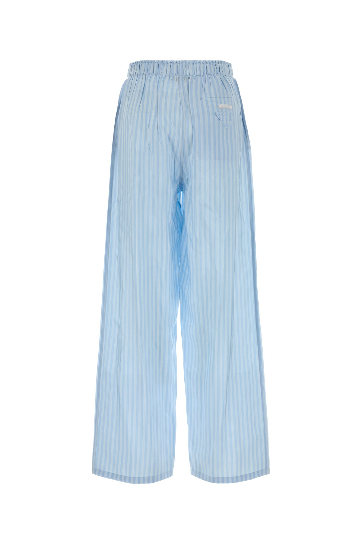 Pantalone pigiama realizzato in pura seta caratterizzato da ricamo a righe su tutta la superficie arricchito da iconico triangolo in tessuto sul retro.