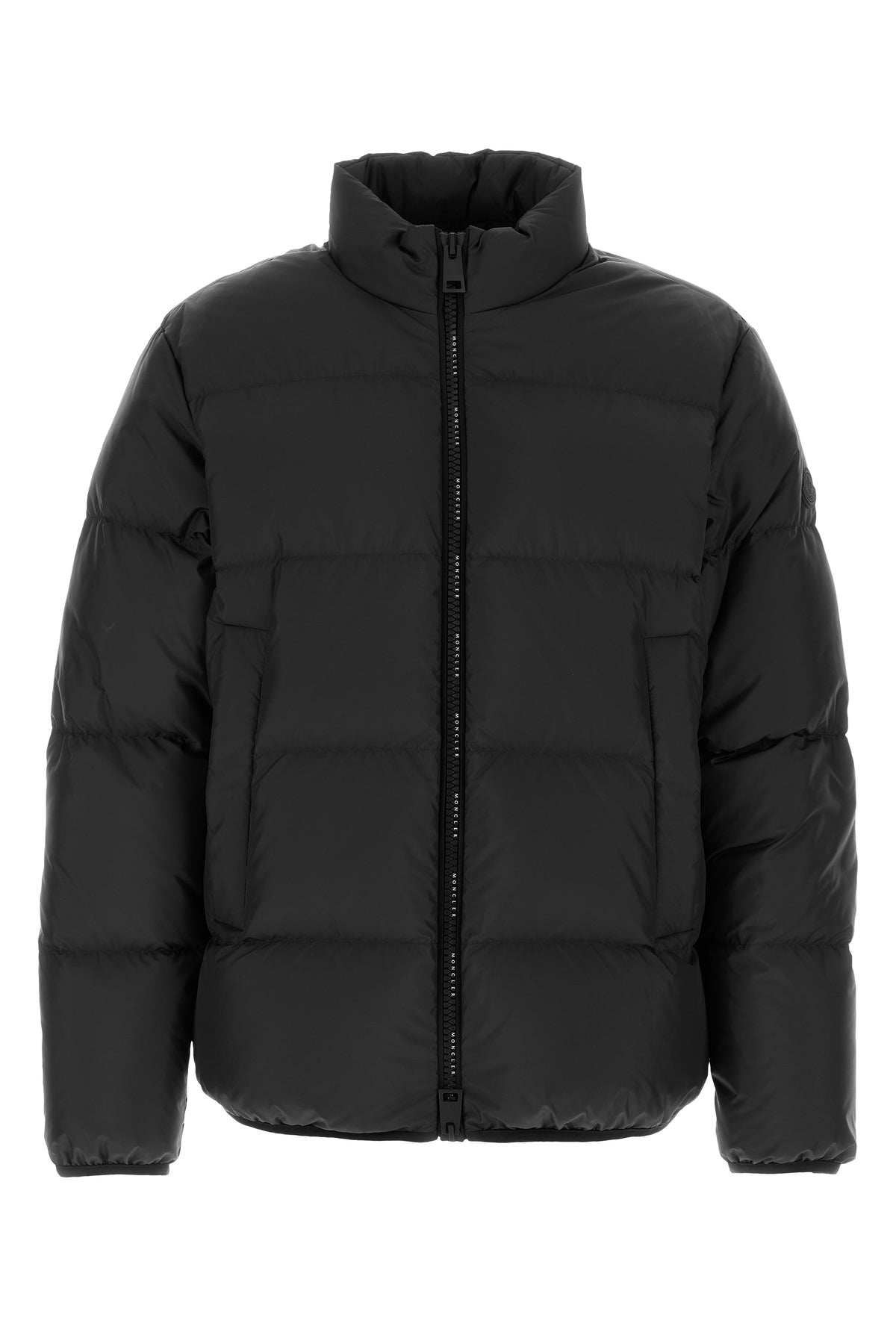 Piumino realizzato in nylon trapuntato arricchito da applicazione logata gommata sulla manica.