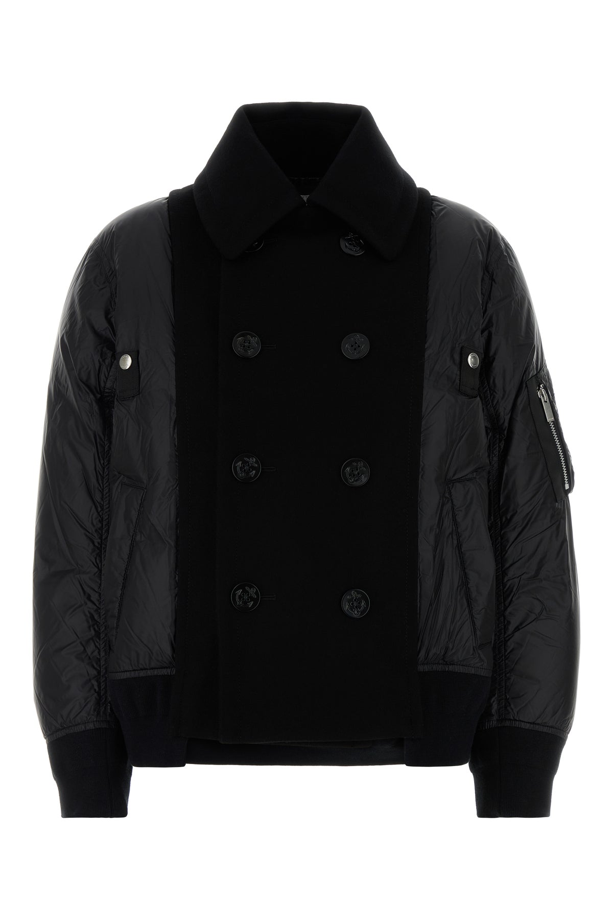 - Due tasche a fessura sulla parte frontale e una tasca a zip sulla manica