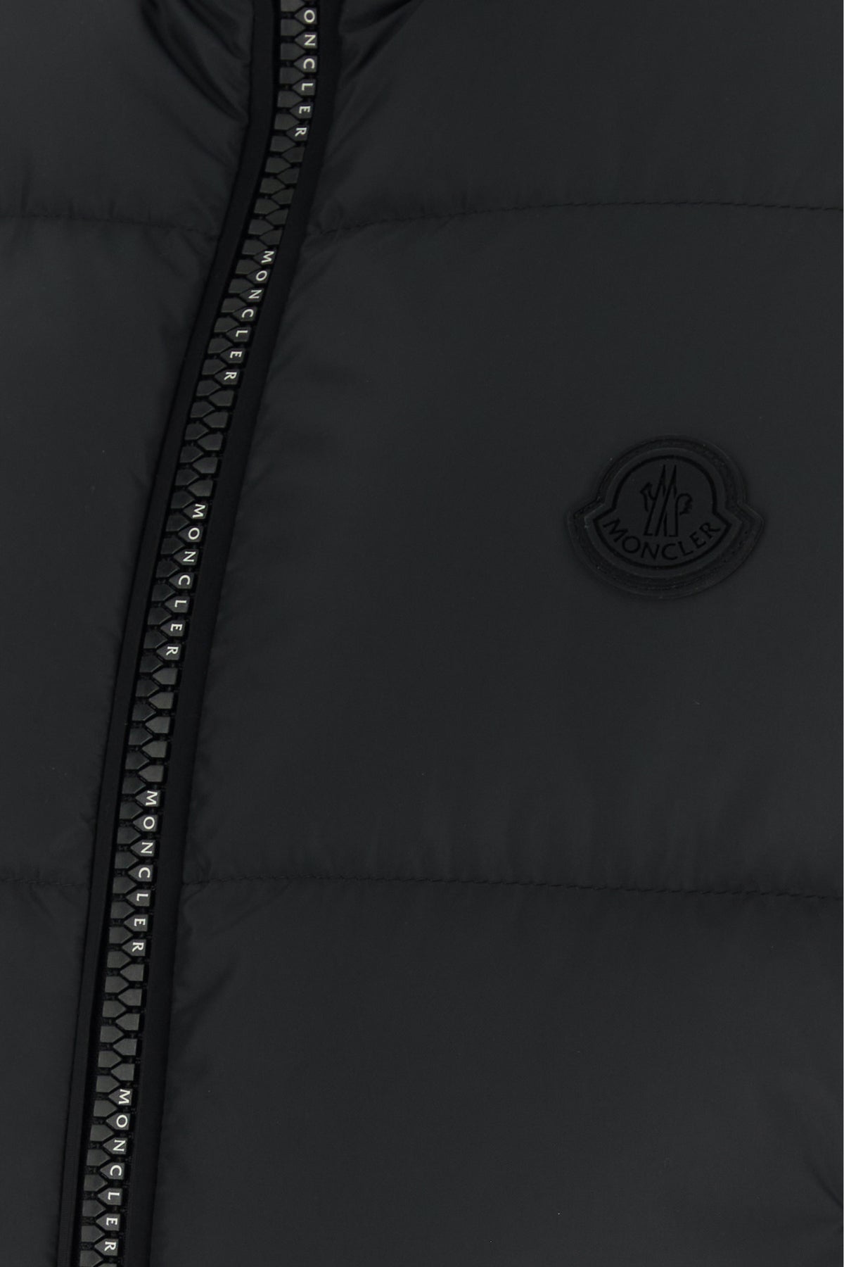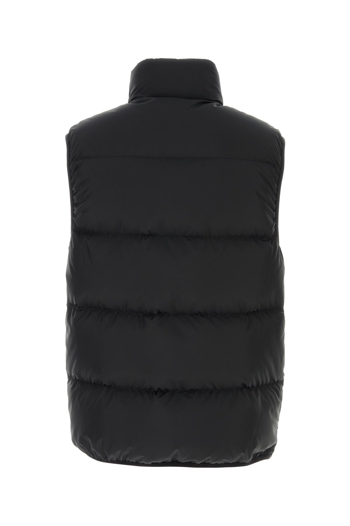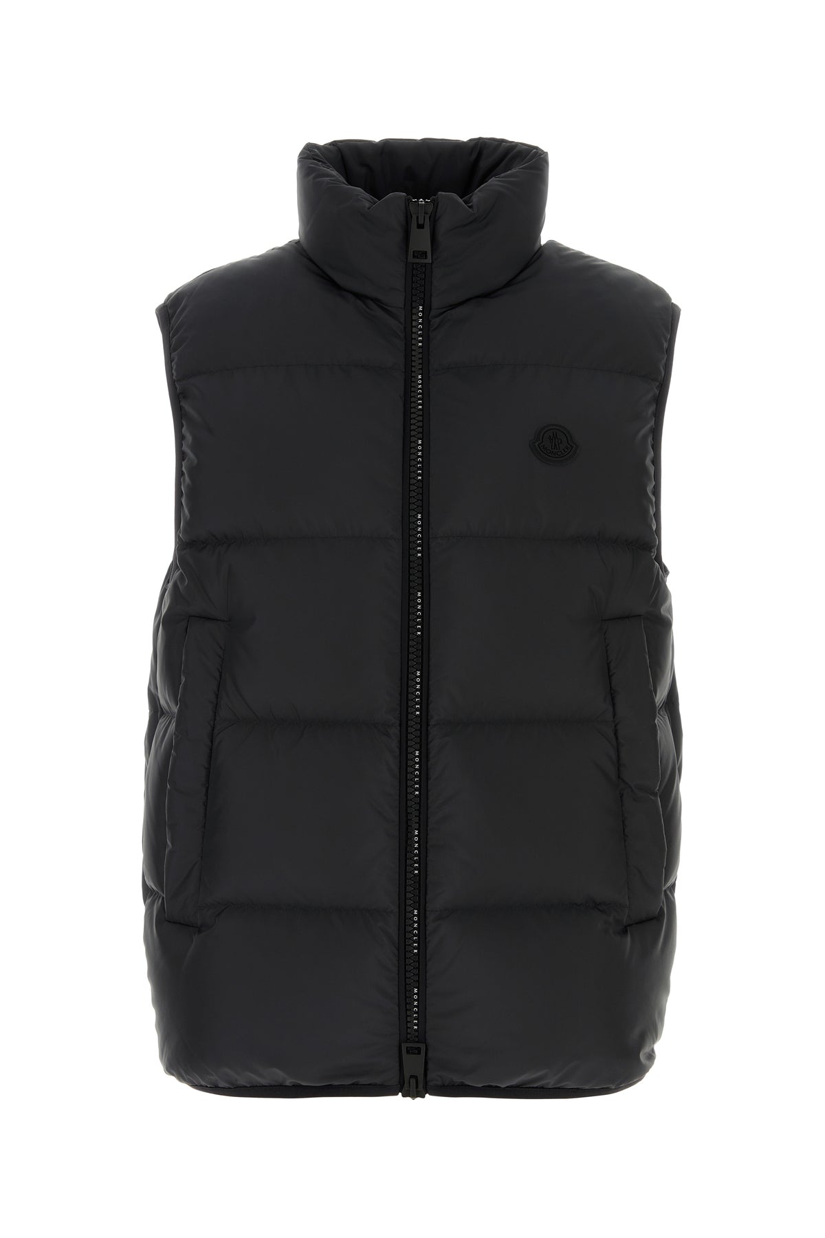 Piumino smanicato realizzato in poliestere trapuntato arricchito da applicazione logata gommata sul petto.