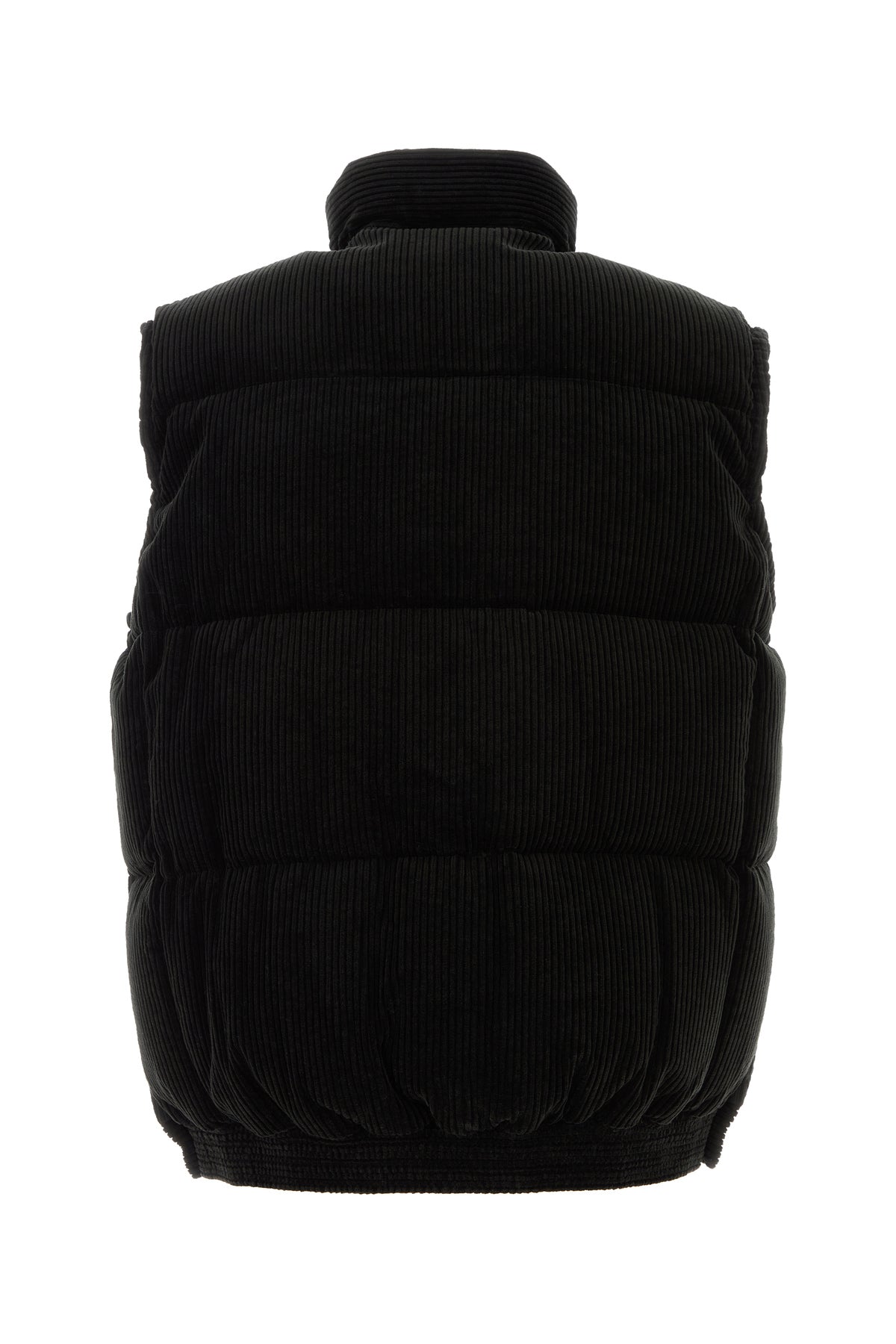 Piumino smanicato realizzato in velluto a coste di puro cotone caratterizzato da collo alto.