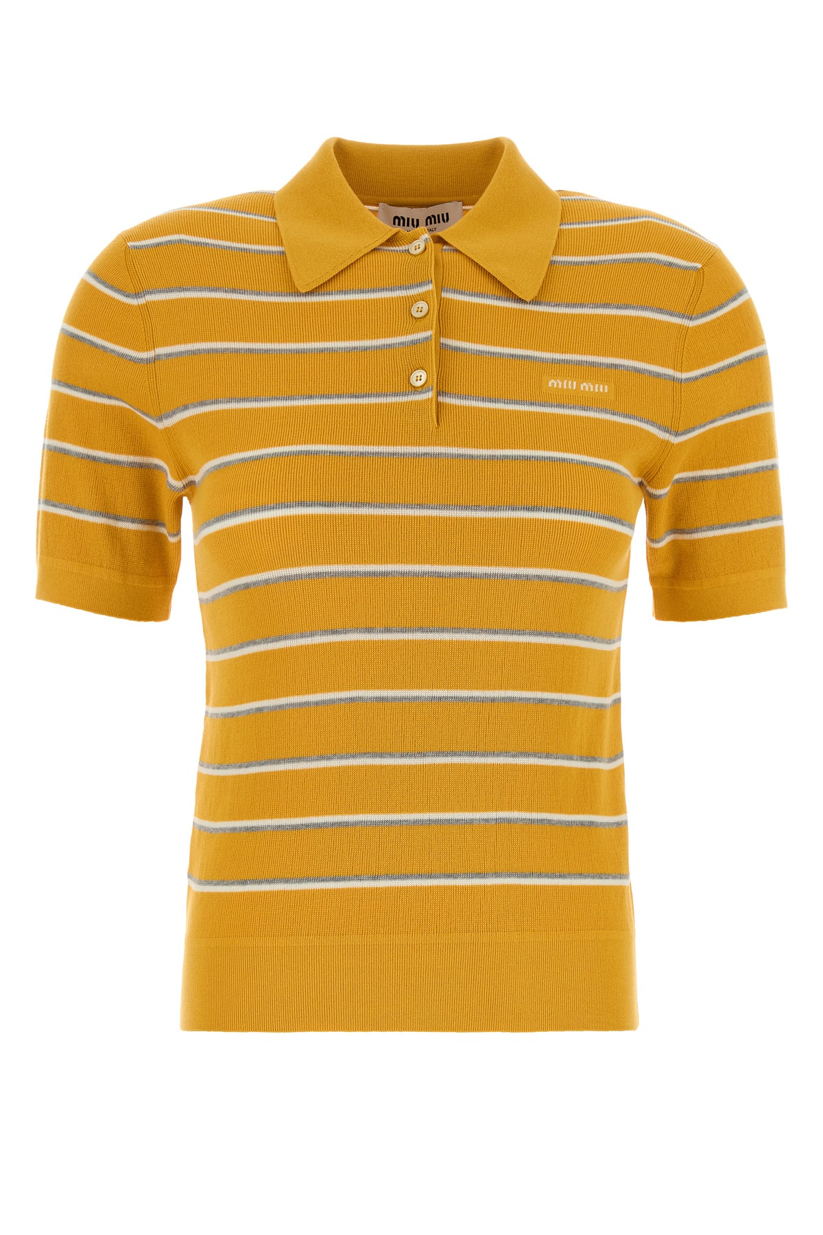 Polo realizzata in misto cotone stretch caratterizzata da ricamo a righe su tutta la superficie arricchito da etichetta logata sul petto.