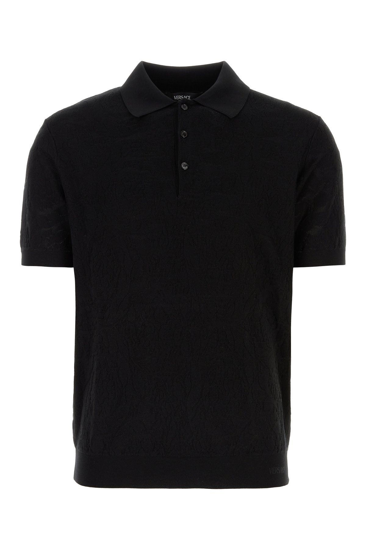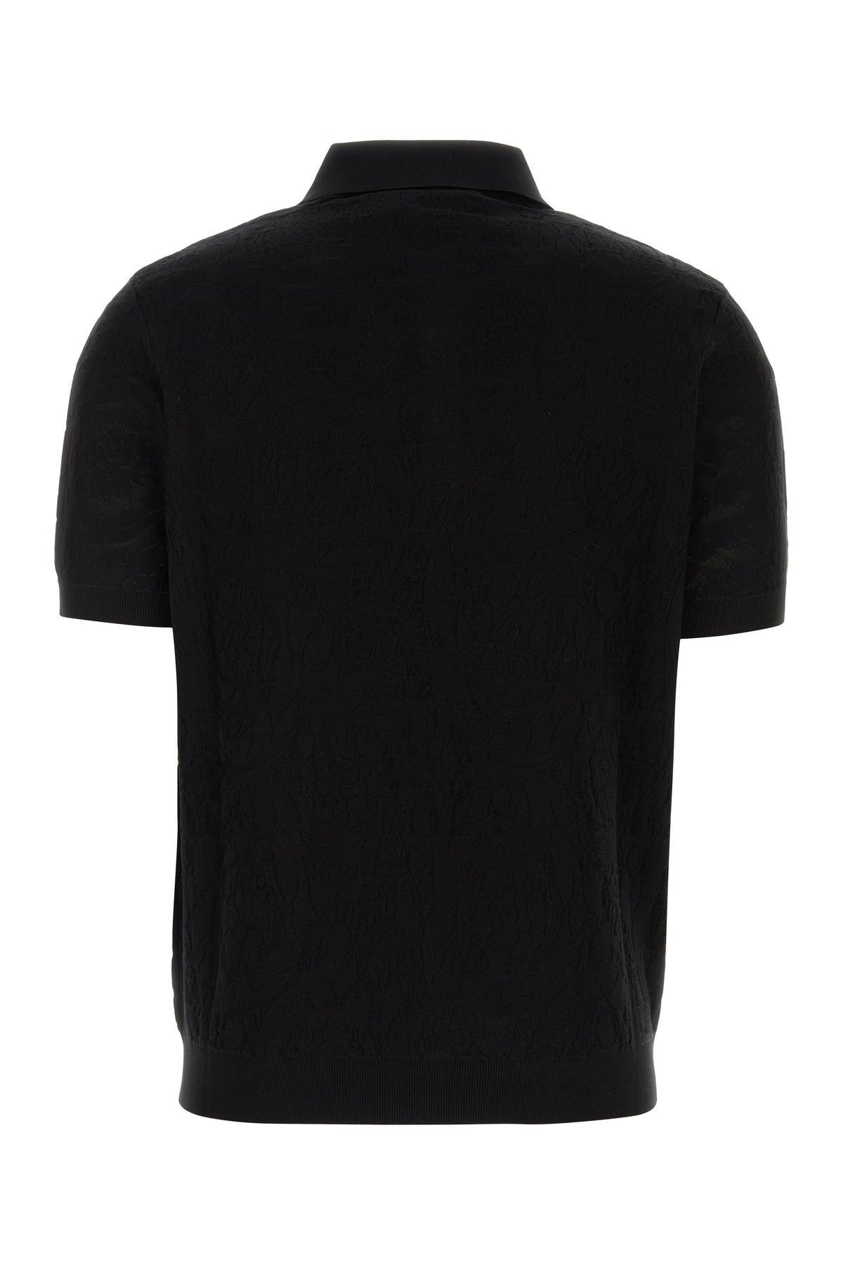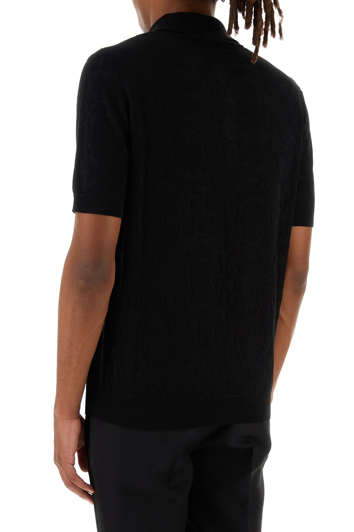 Polo realizzata in seta e cotone caratterizzata da ricamo Barocco tonale su tutta la superficie.