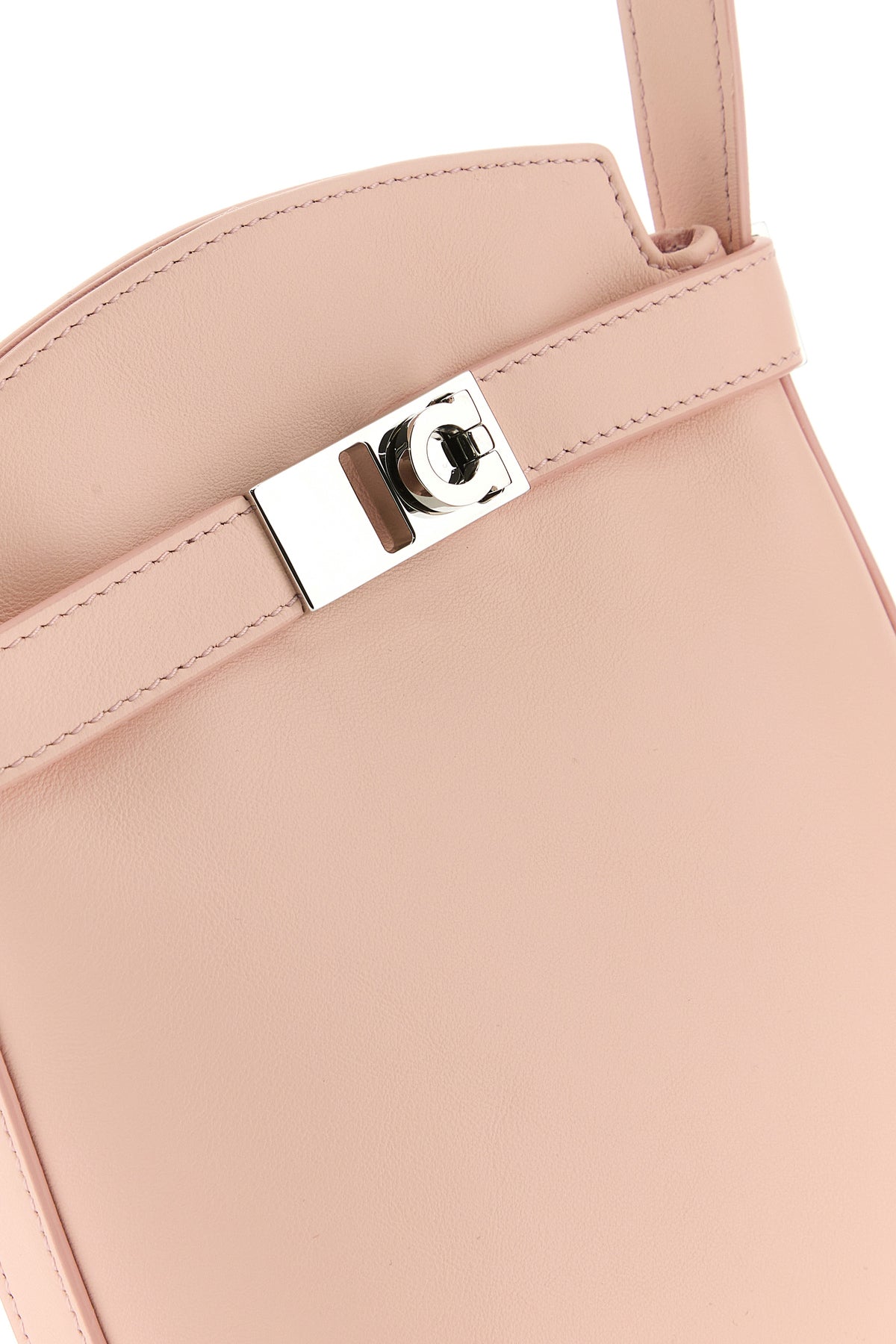 Porta cellulare realizzato in pelle liscia arricchito da fibbia metallica Gancini sulla parte frontale.