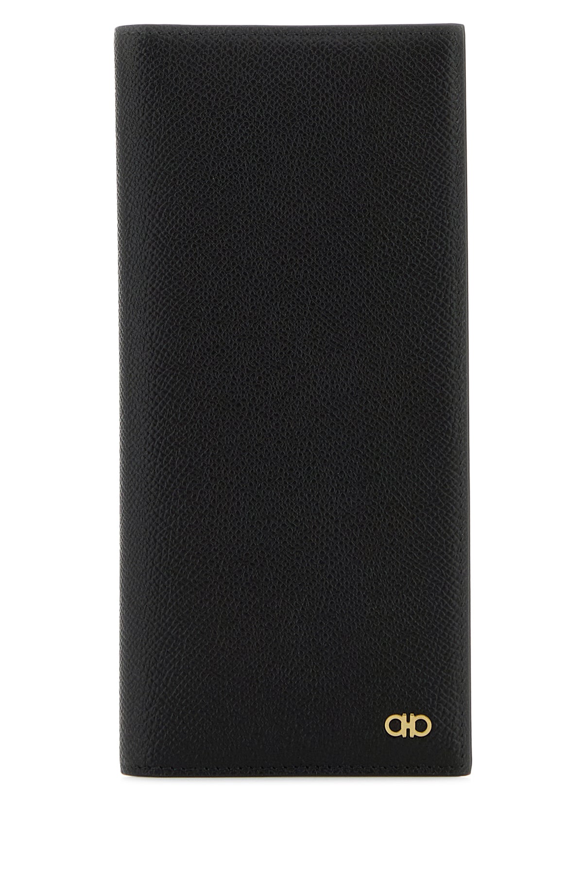 Portacarte realizzato in pelle zigrinata arricchito da dettaglio metallico Gancini sul fondo.