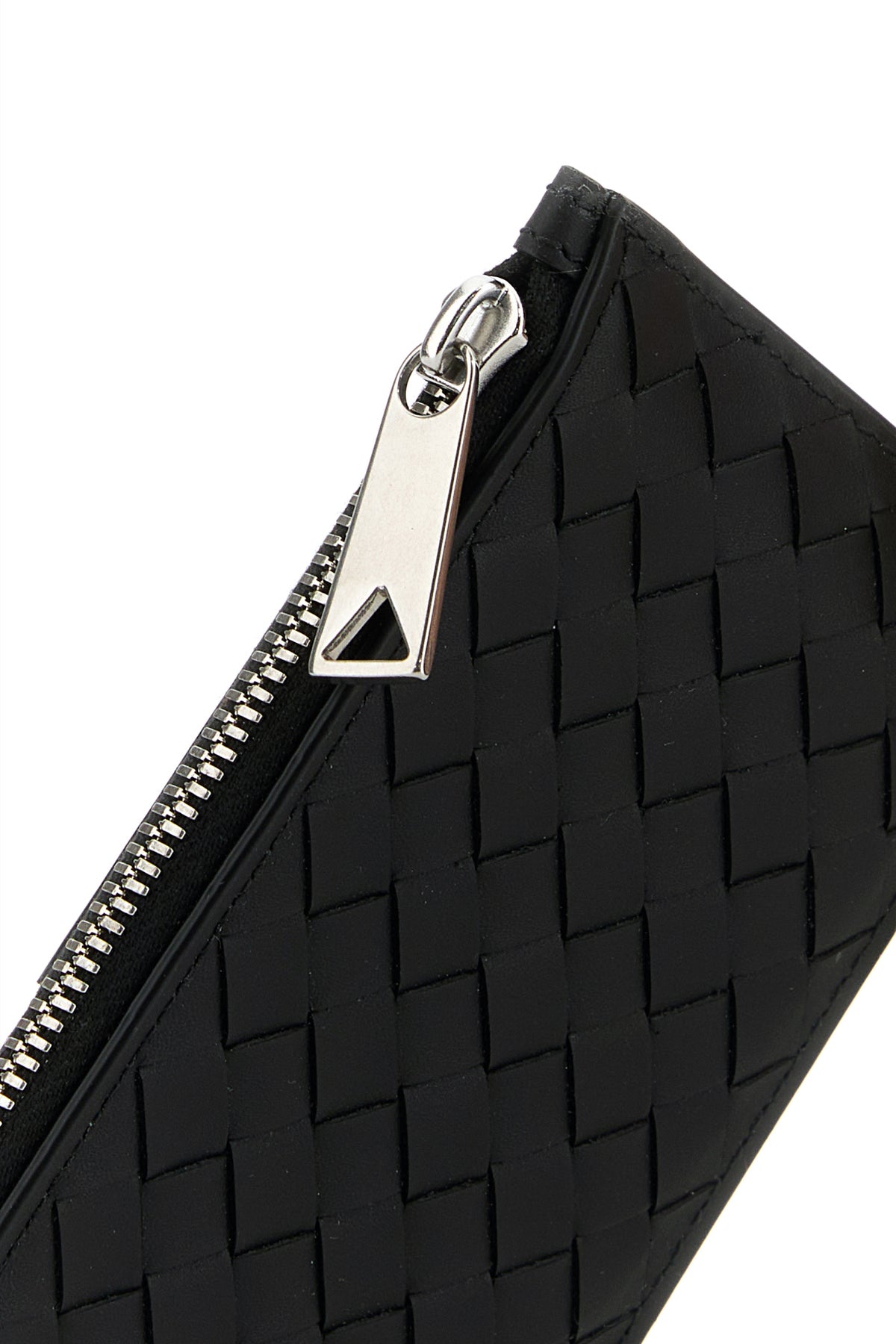 Portacarte realizzato in pelle caratterizzato da iconico motivo Intrecciato sulla parte frontale e logo impresso sul retro.
