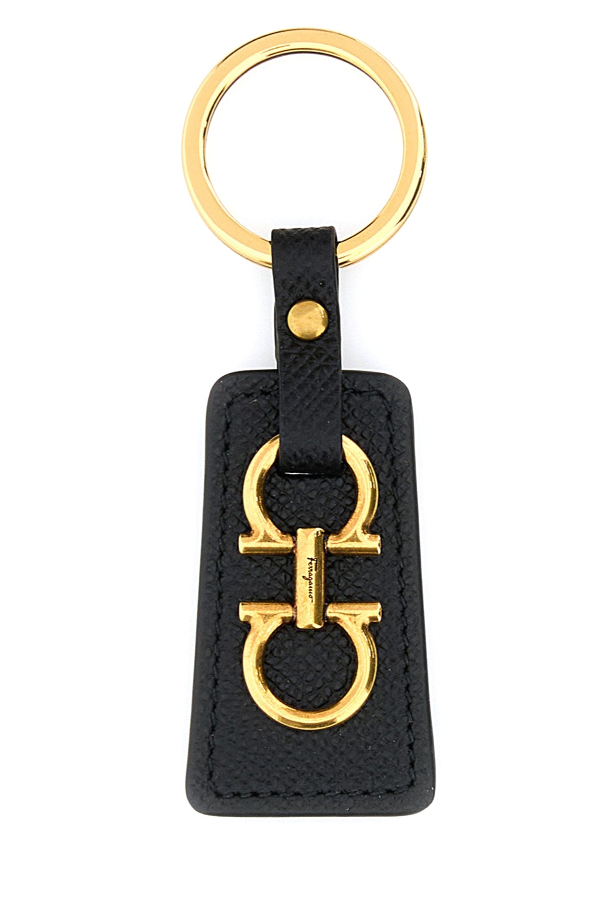 Portachiavi realizzato in pelle martellata arricchito da dettaglio metallico Gancini sulla parte frontale.