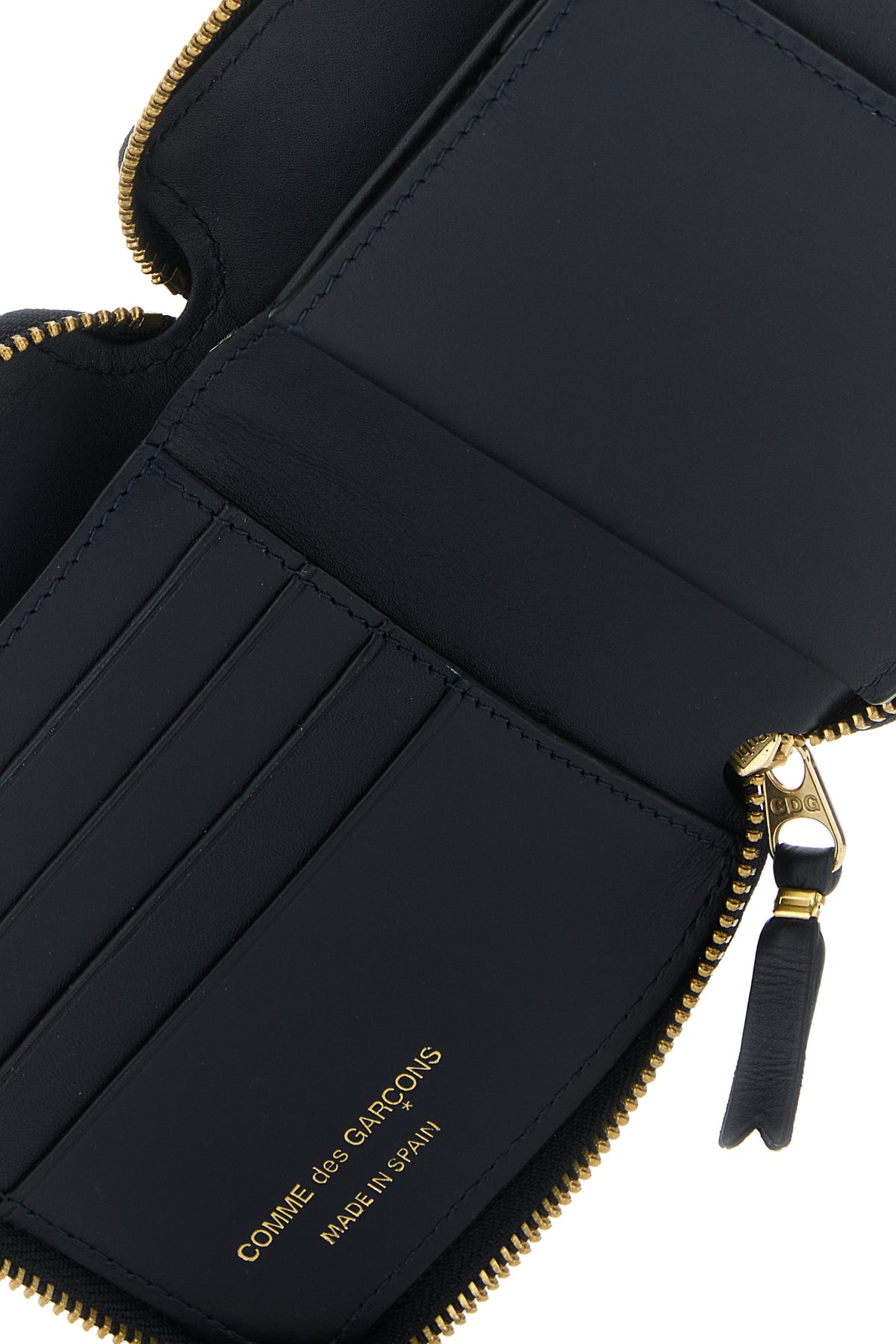 - Interno con uno scomparto per banconote, una tasca portamonete, una tasca a fessura e quattro spazi per carte di credito