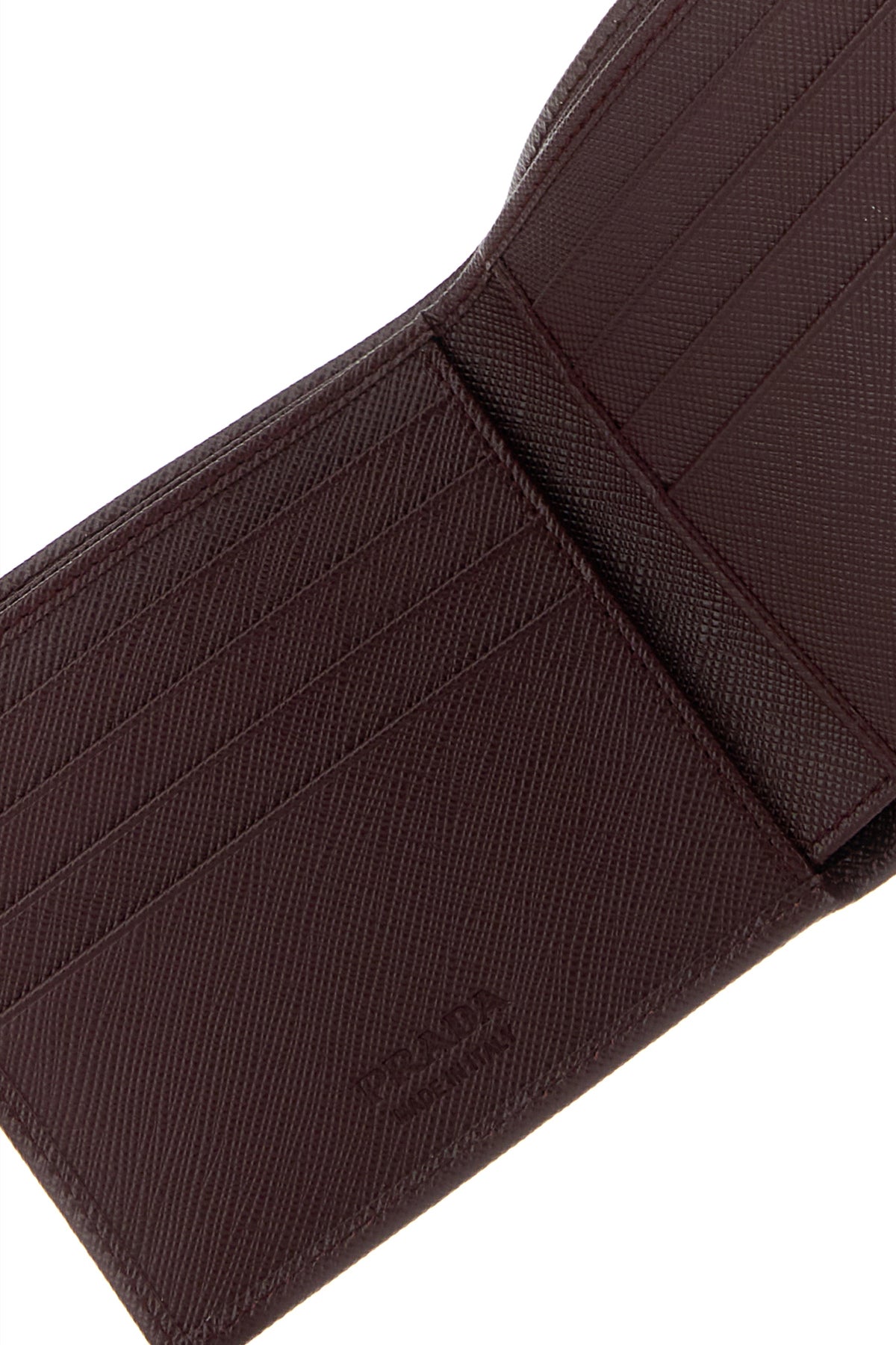- Interno con due scomparti per banconote, due tasche a fessura e otto spazi per carte di credito