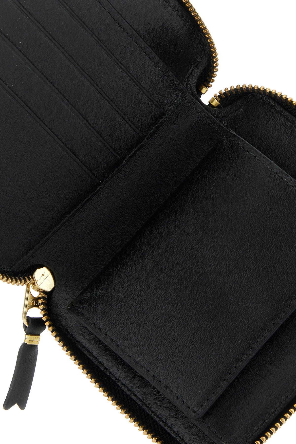 - Interno con uno scomparto per banconote, una tasca portamonete, due tasche a fessura e quattro spazi per carte di credito