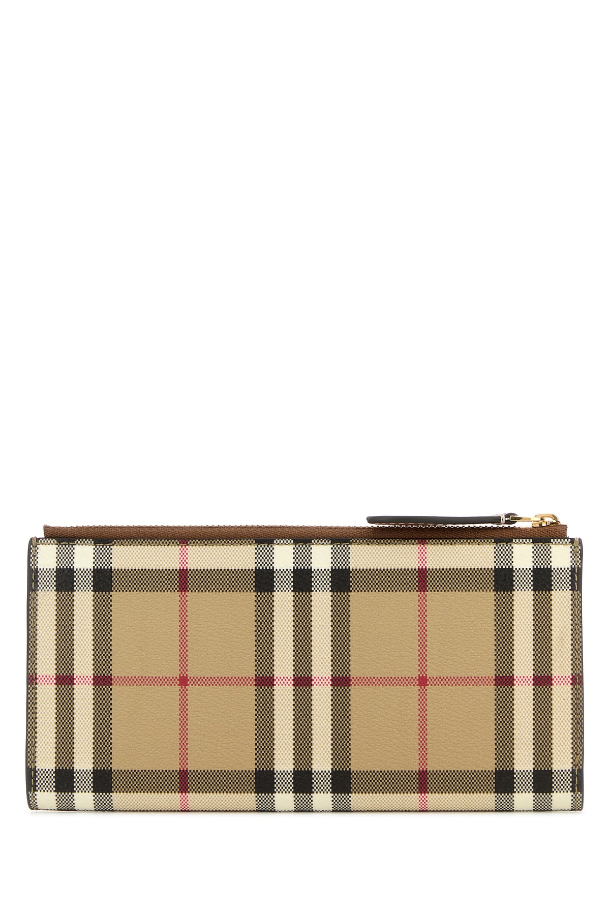 Portafoglio realizzato in tela caratterizzato da stampa Burberry Check su tutta la superficie.