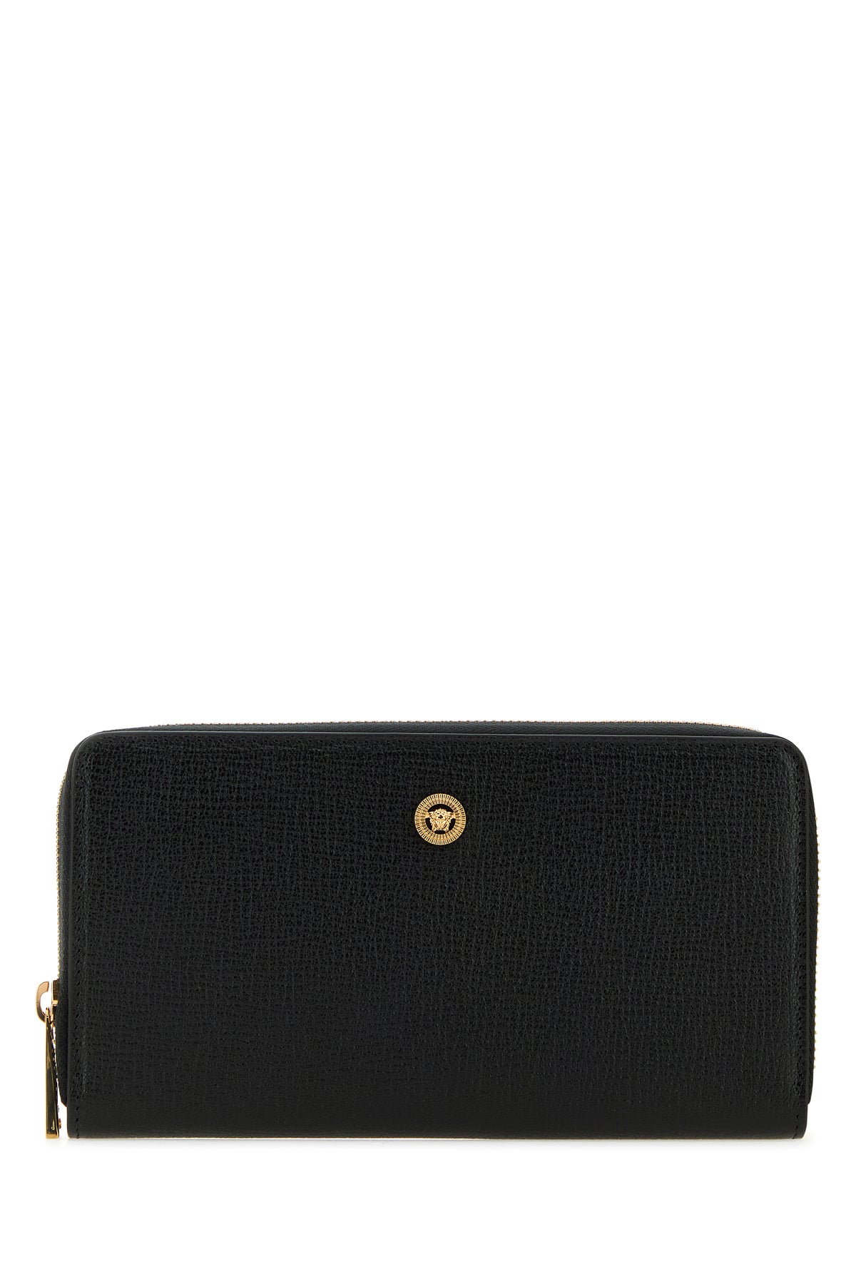 Portafoglio realizzato in pelle ovina martellata caratterizzato da logo stampato laminato sul retro arricchito da dettaglio Medusa Biggie in metallo sulla parte frontale.