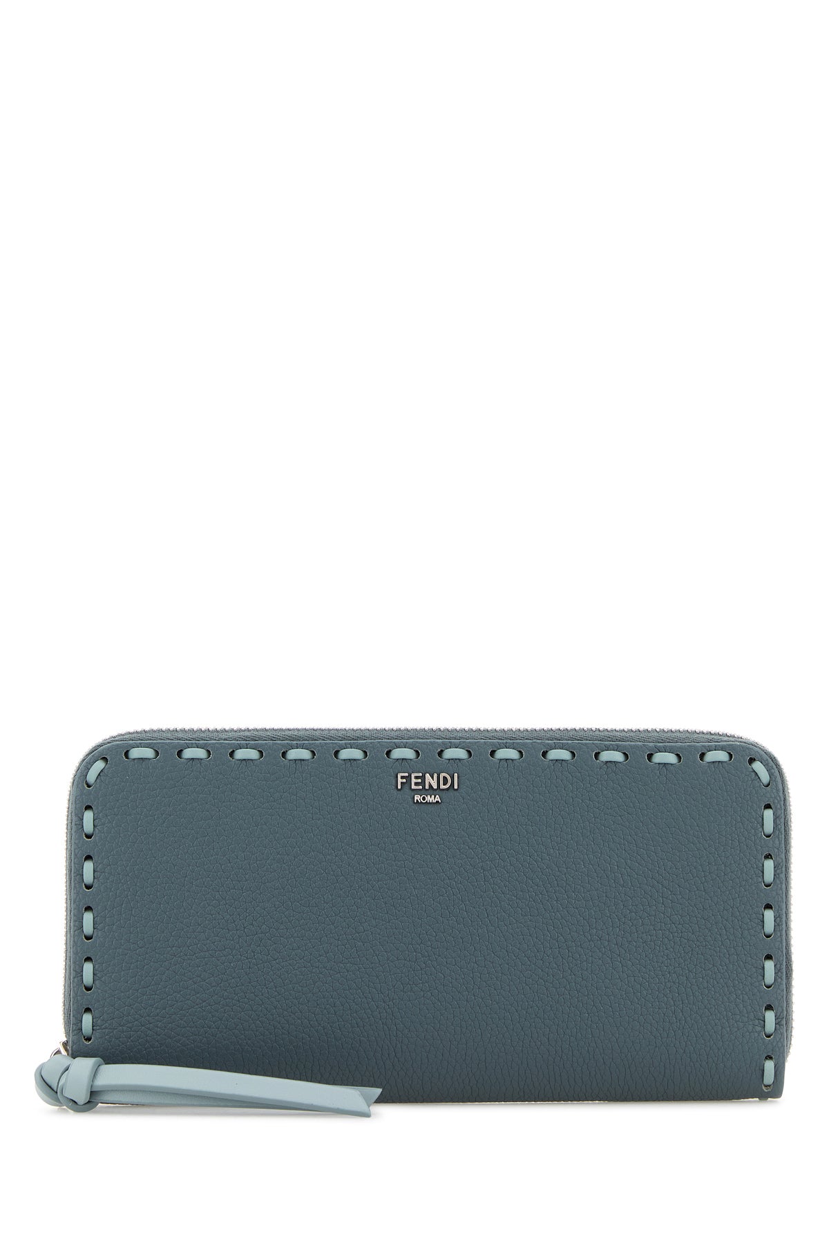 Portafoglio realizzato in pelle martellata arricchito da logo in lettere metalliche sulla parte frontale.