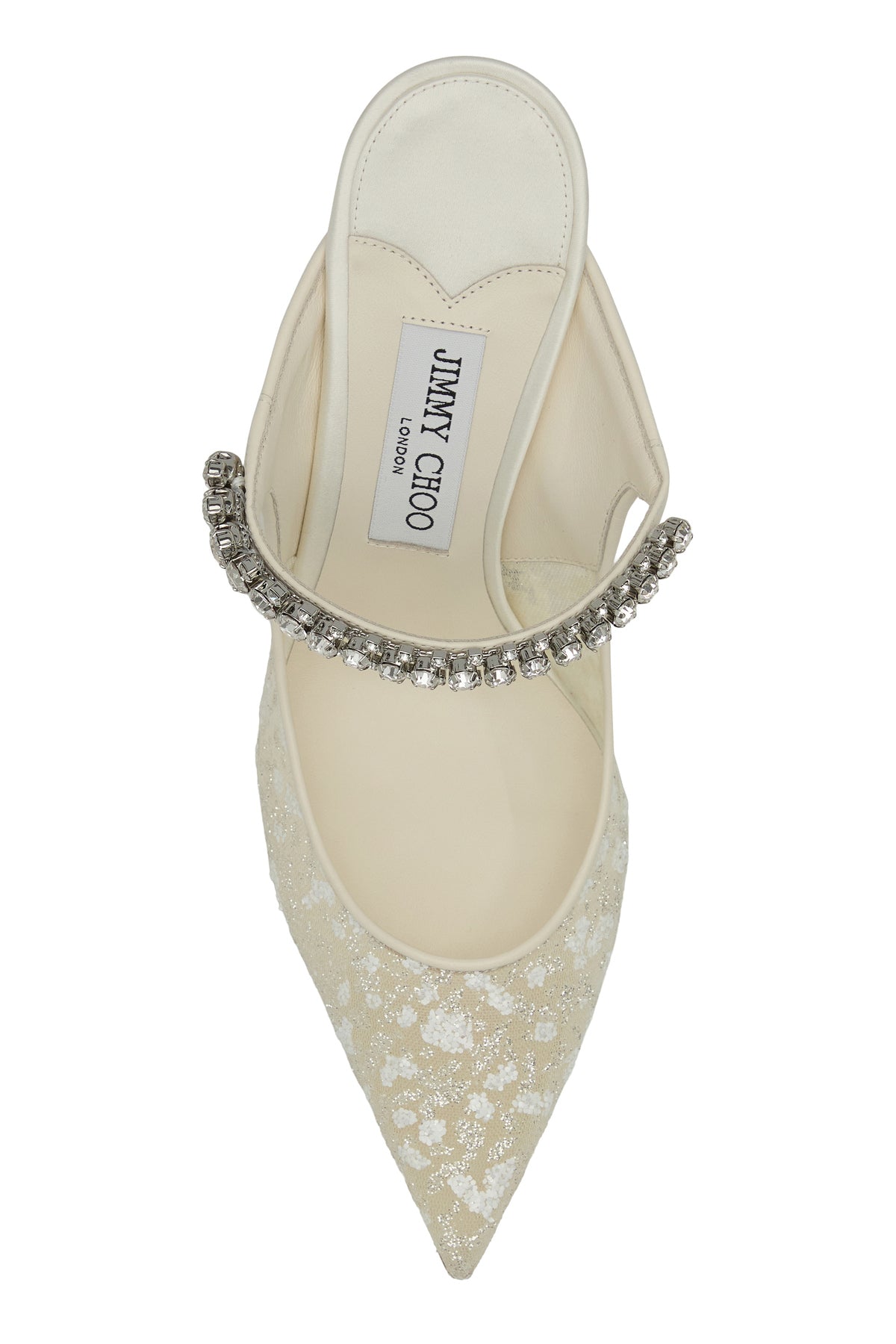 Sabot realizzati in rete caratterizzate da ricami con paillettes sulla parte frontale arricchite da cinturino gioiello sul collo del piede.