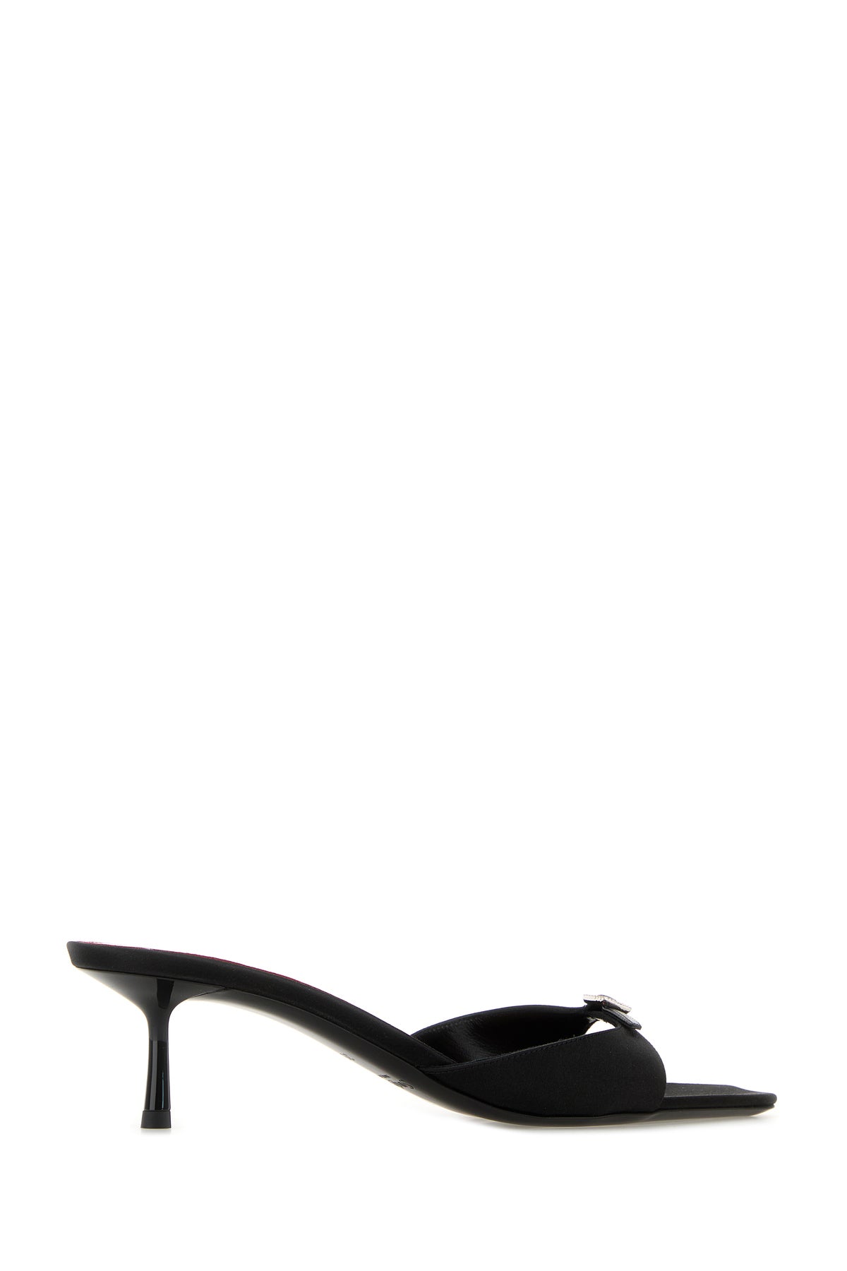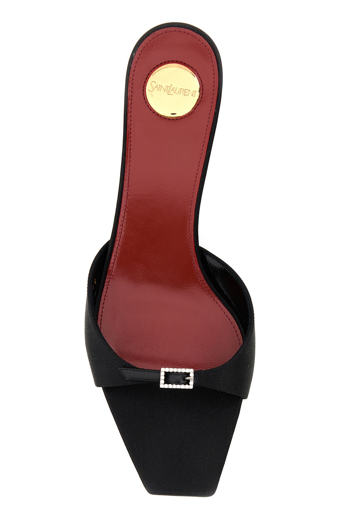 Sabot realizzati in raso caratterizzati da cinturino con fibbia gioiello sul collo del piede.