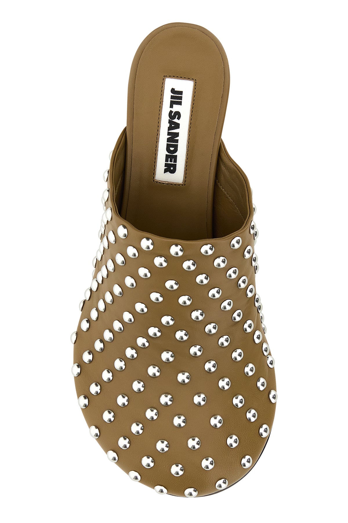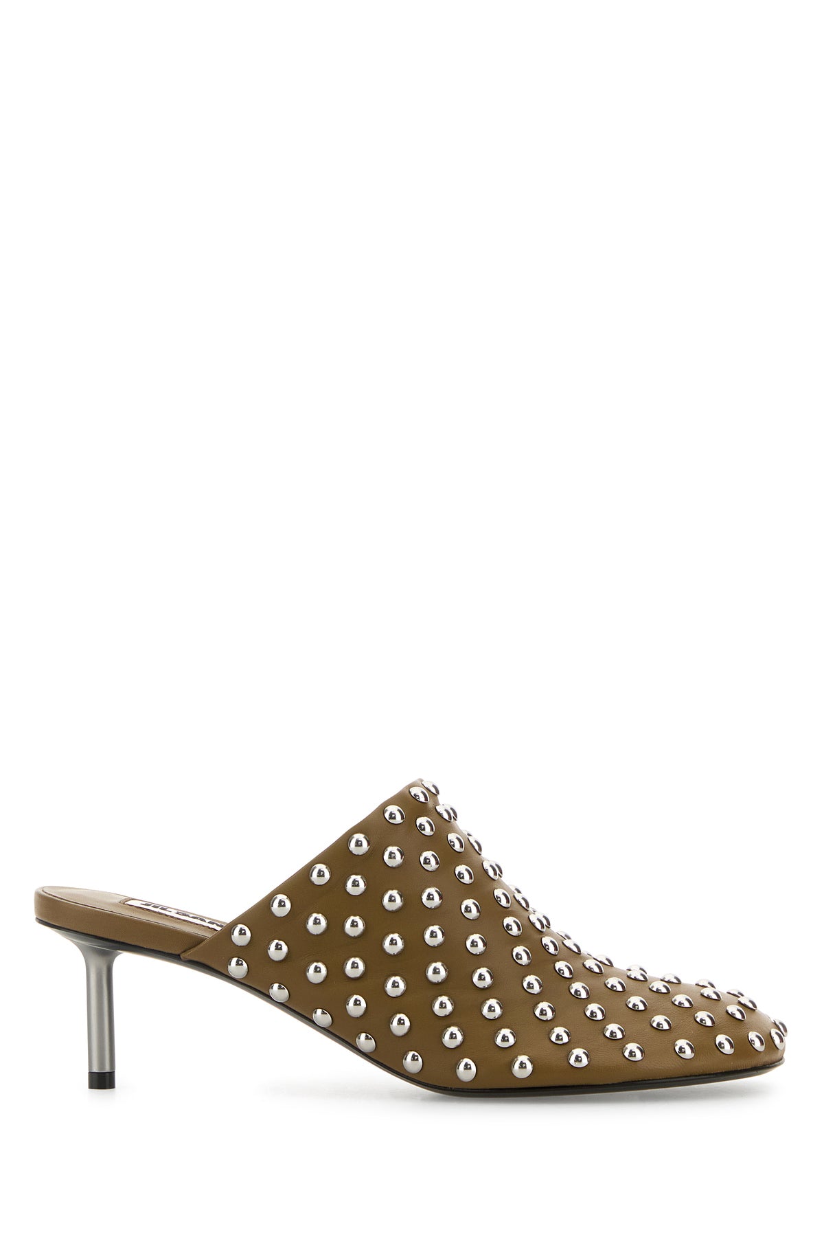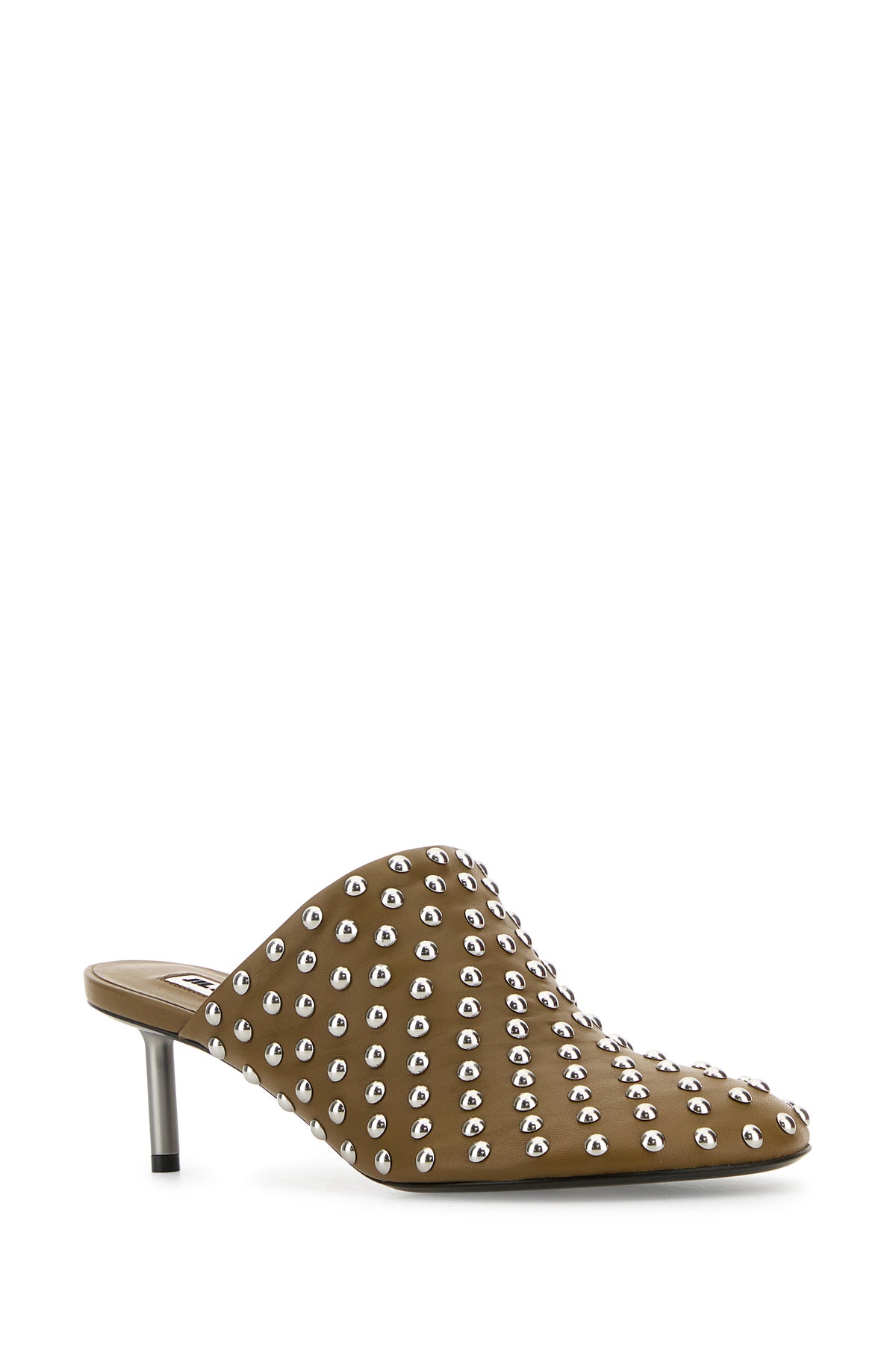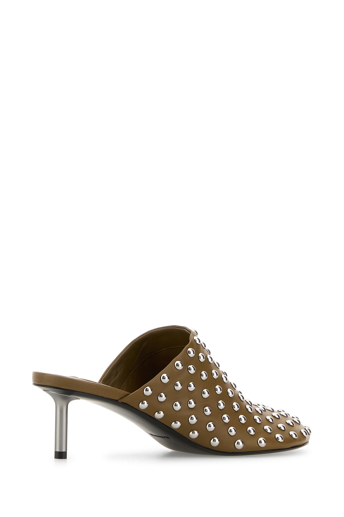 Sabot realizzati in pelle ovina arricchiti da borchie metalliche su tutta la superficie.