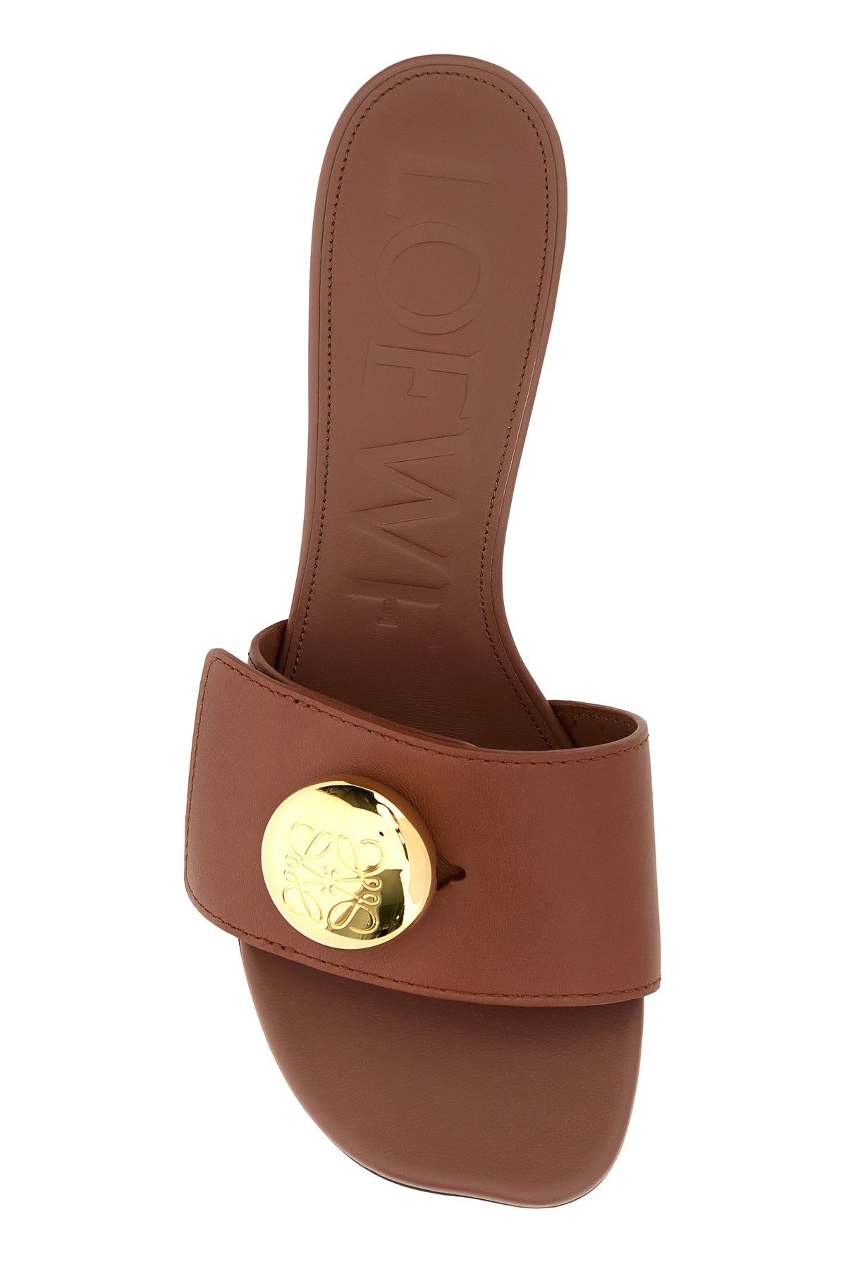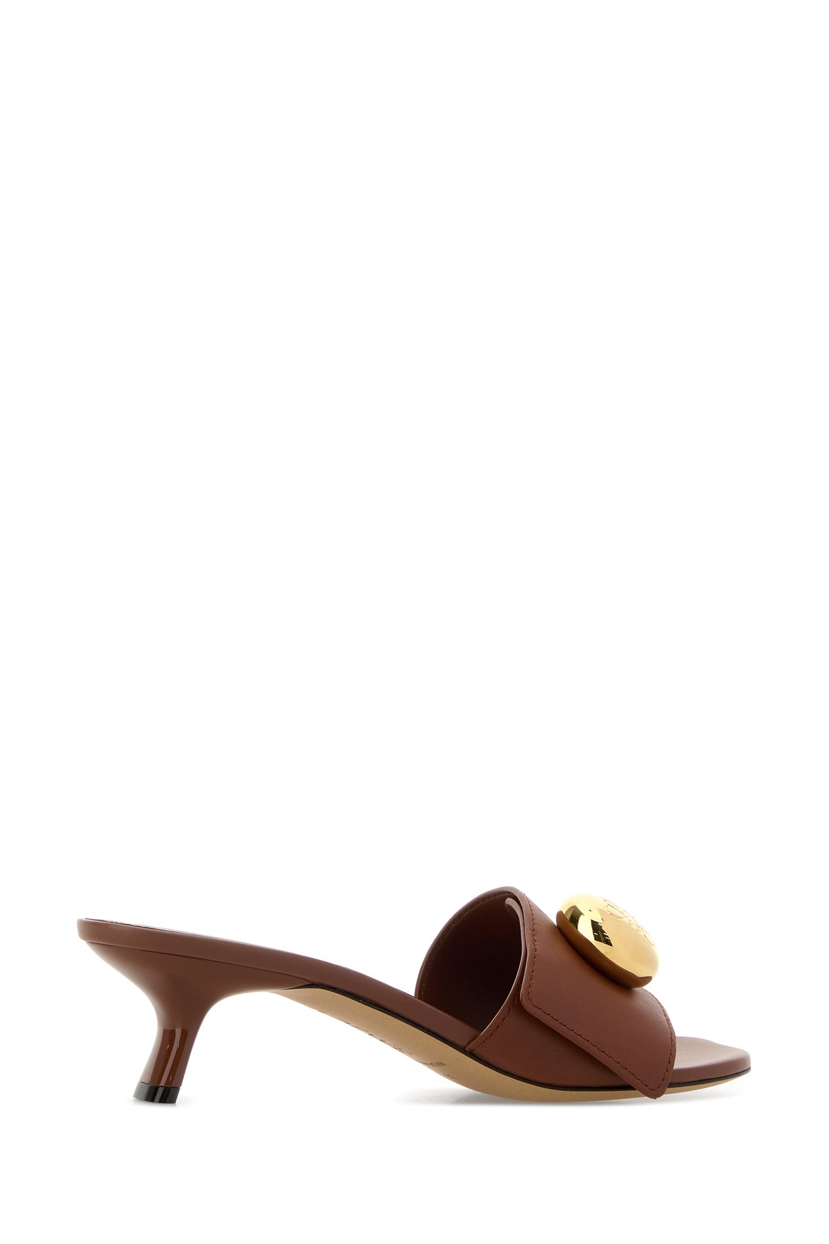 Sabot realizzati in pelle di vitello arricchite da dettaglio metallico Anagram Pebble sul collo del piede.