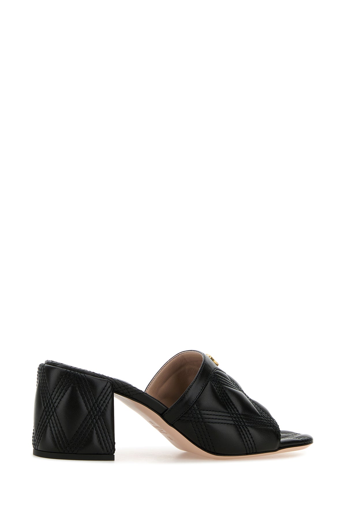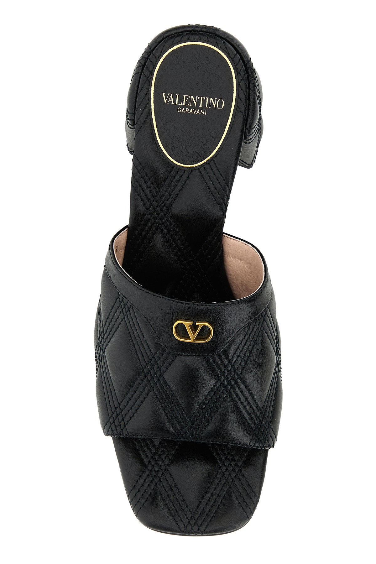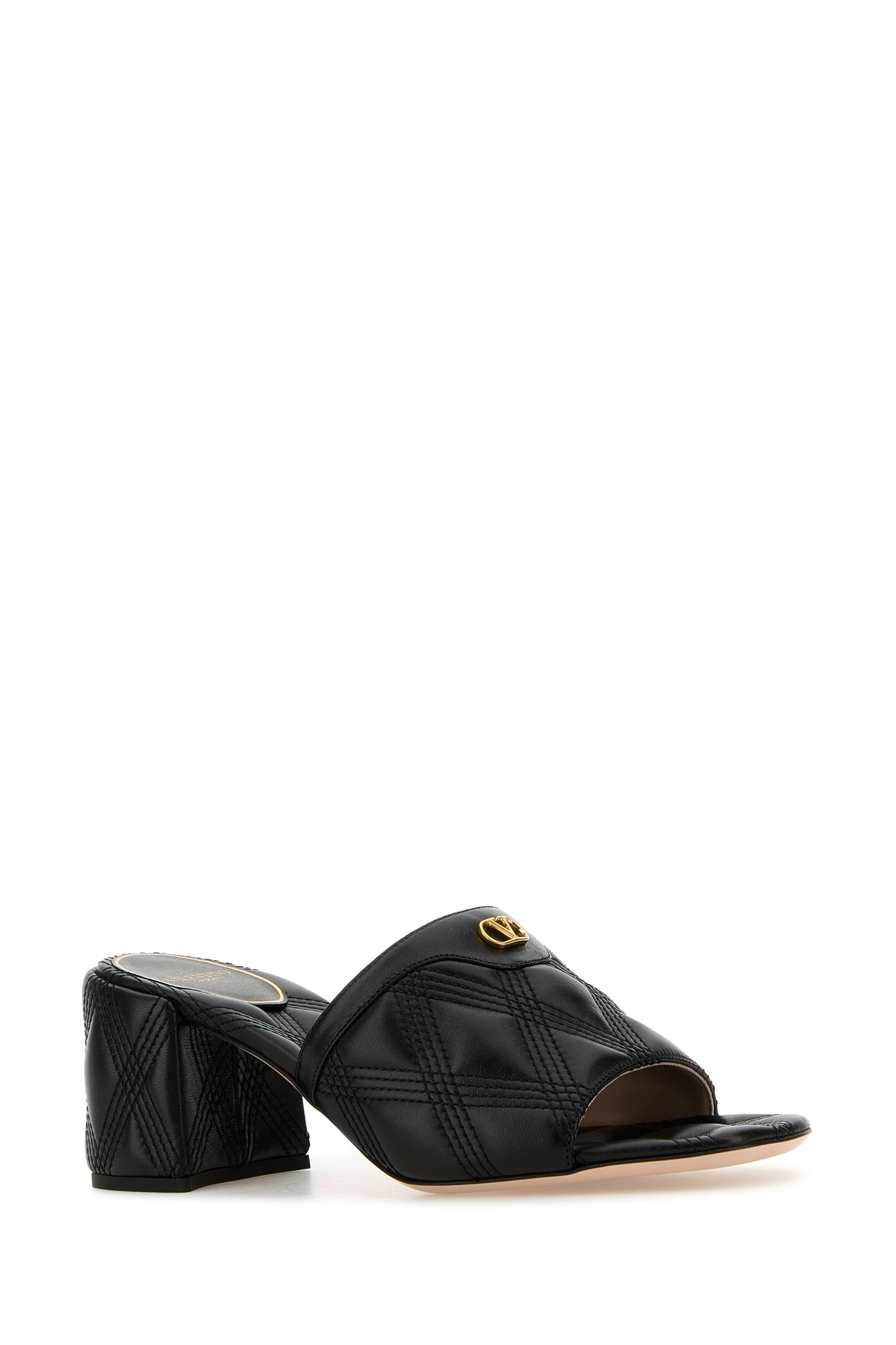Sabot realizzati in pelle trapuntata arricchiti da dettaglio metallico VLogo sulla banda.
