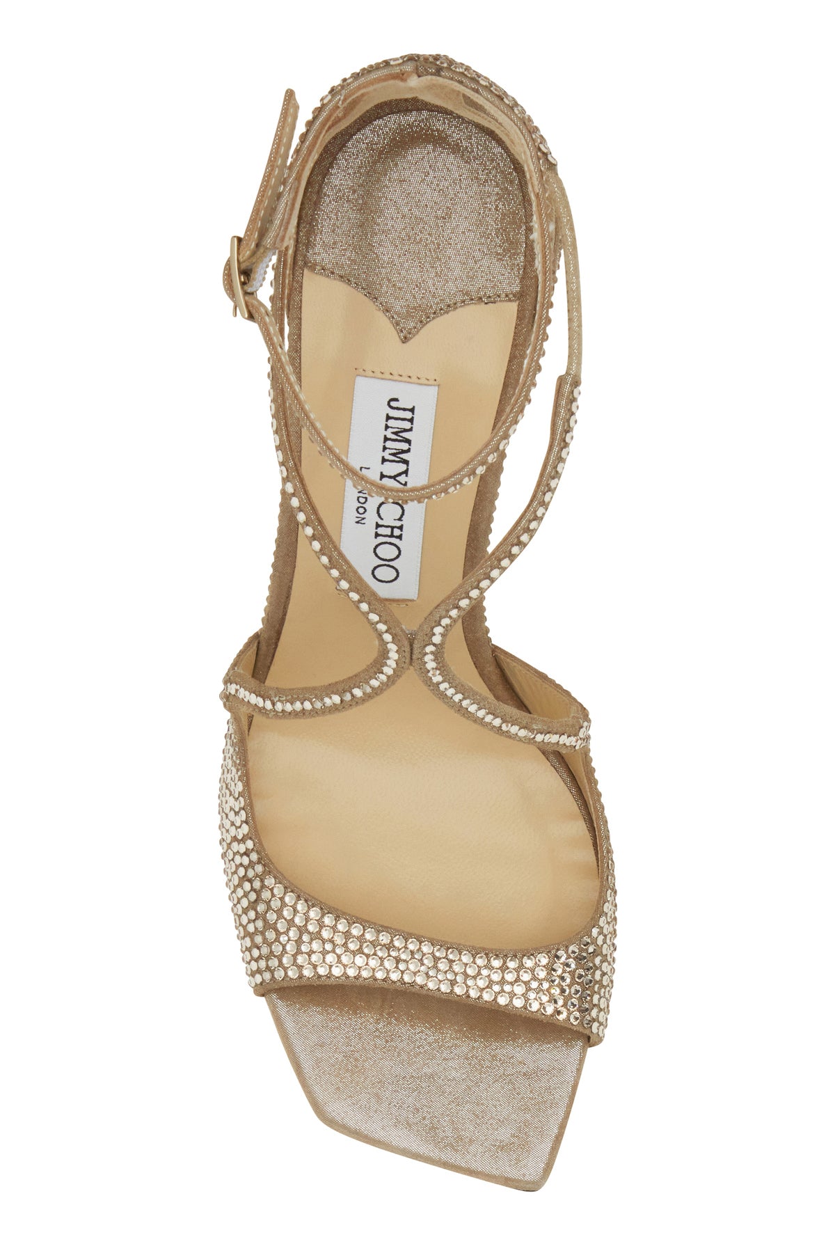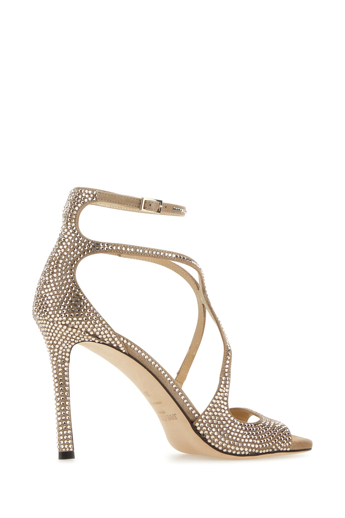 Sandali realizzati in pelle scamosciata interamente ricoperta di cristalli caratterizzati da tacco a stiletto.