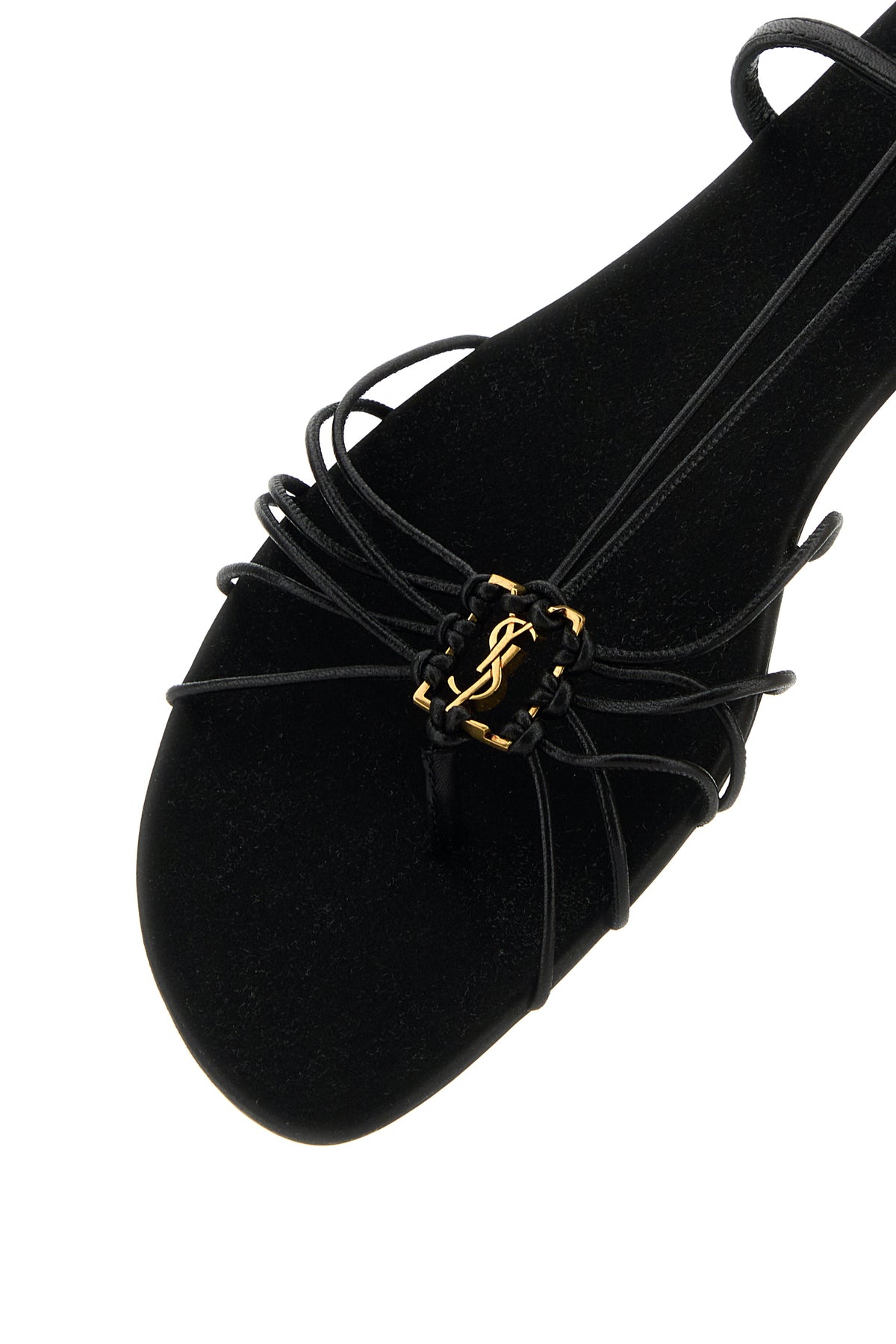 Sandali realizzati in pelle arricchiti da iconico dettaglio metallico Mongoram sul collo del piede.