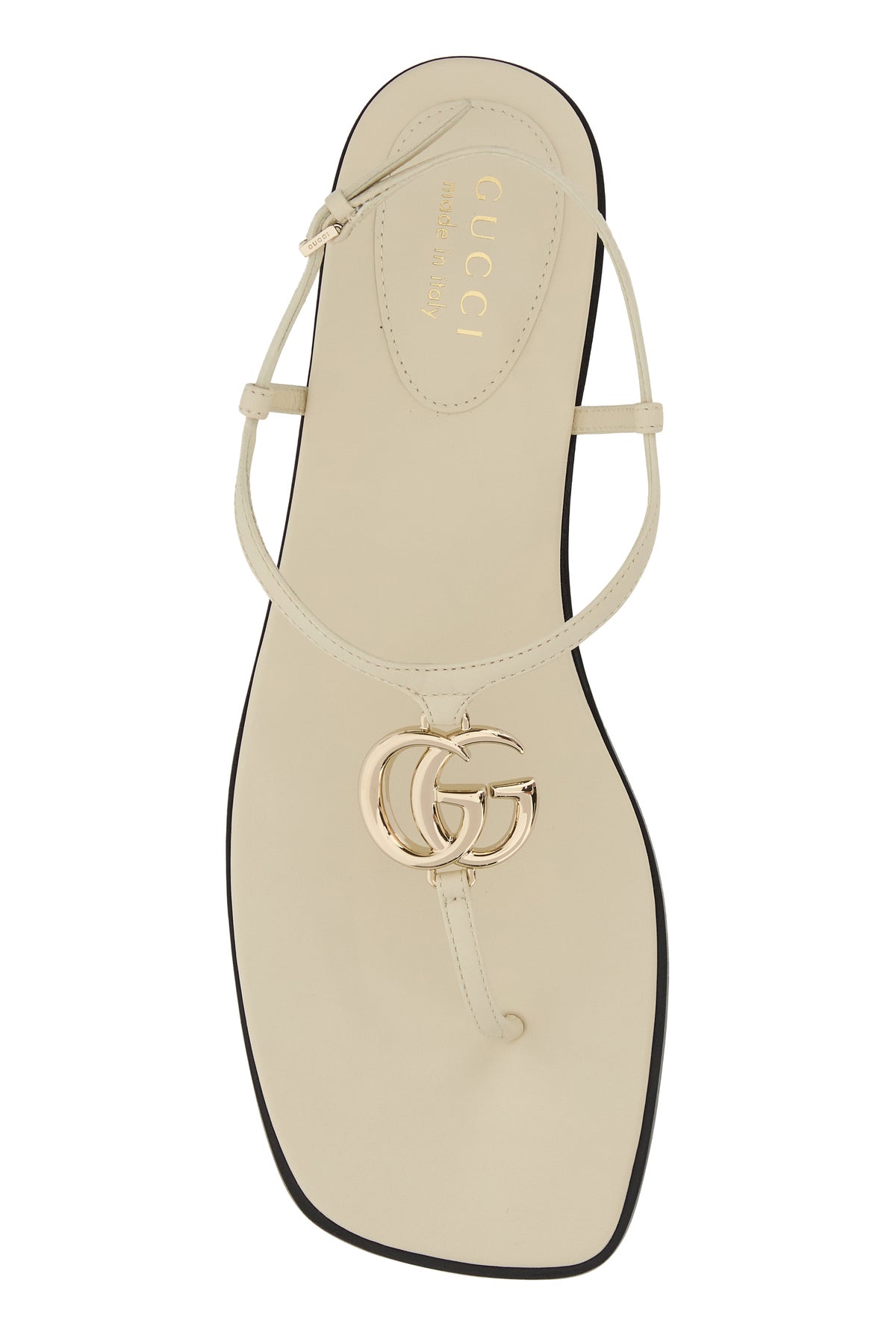 Sandali infradito realizzati in pelle arricchiti da dettaglio metallico GG sul collo del piede.