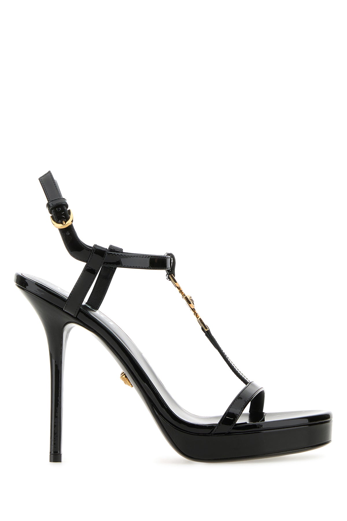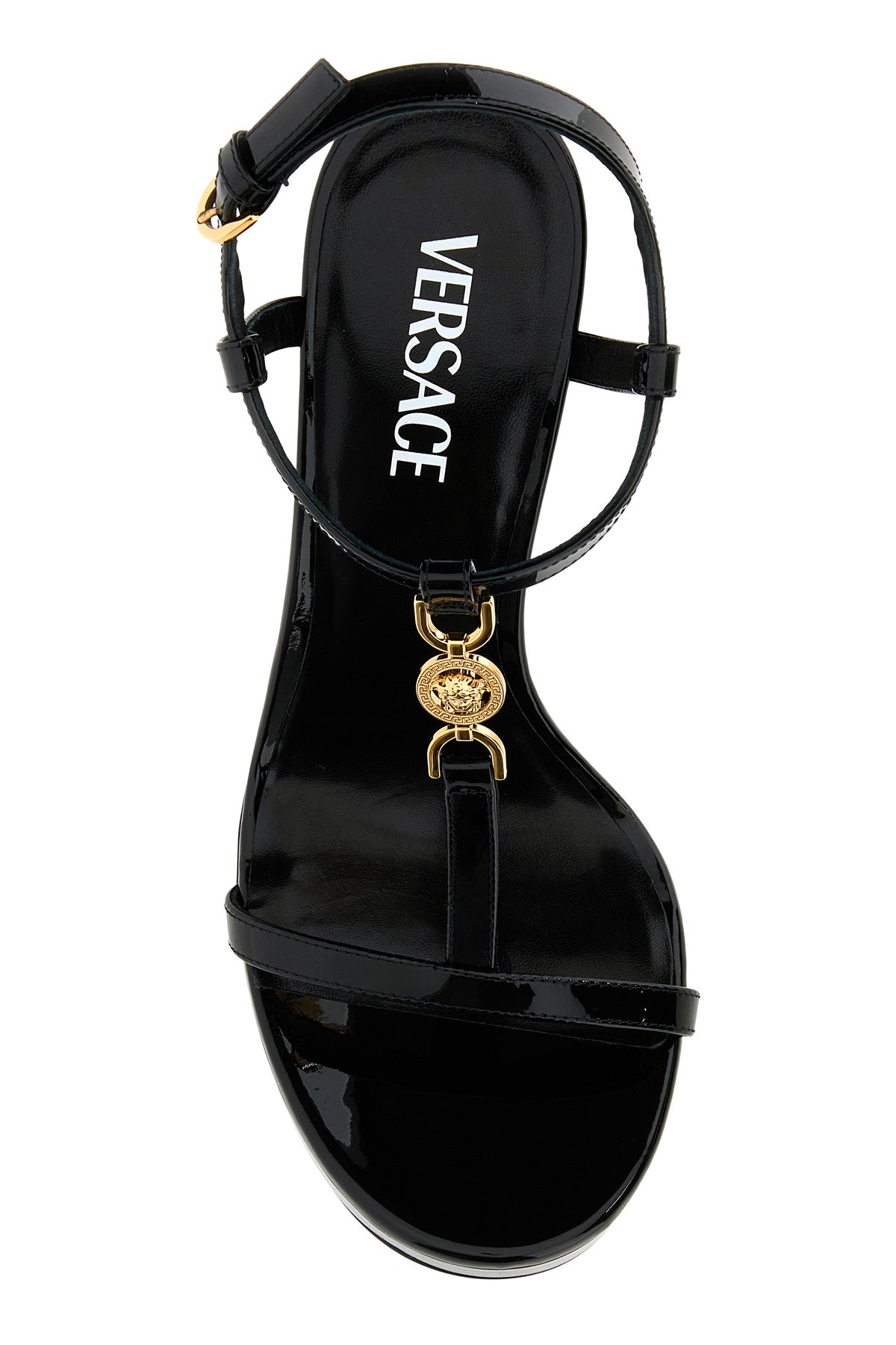 Sandali realizzati in pelle di vitello verniciata arricchiti da dettaglio Medusa '95 in metallo sul collo del piede.