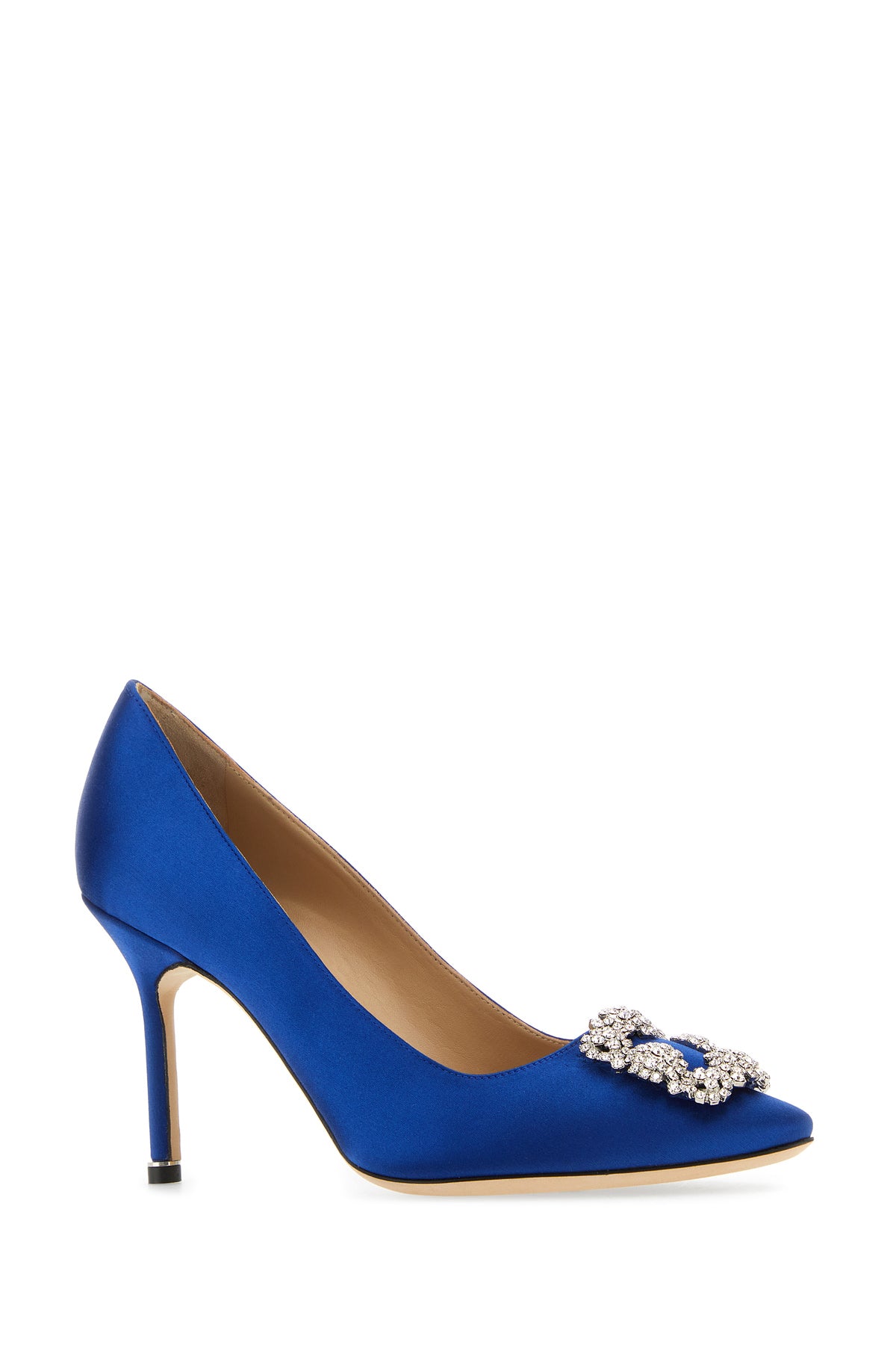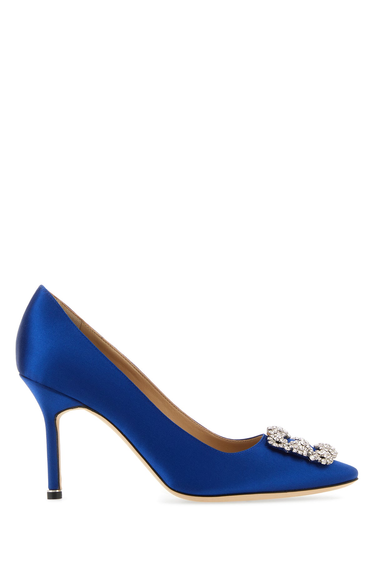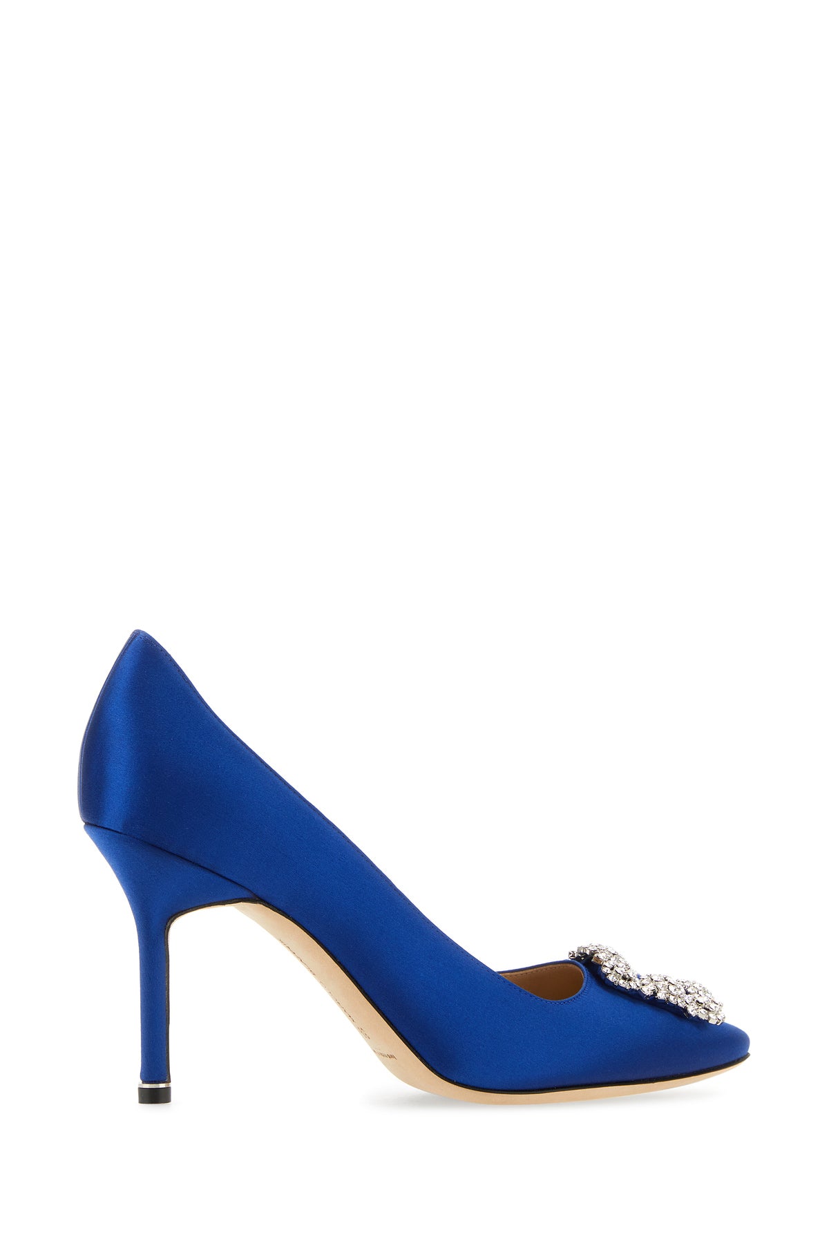 Scarpe con tacco realizzate in raso arricchite da dettaglio gioiello sulla parte frontale.