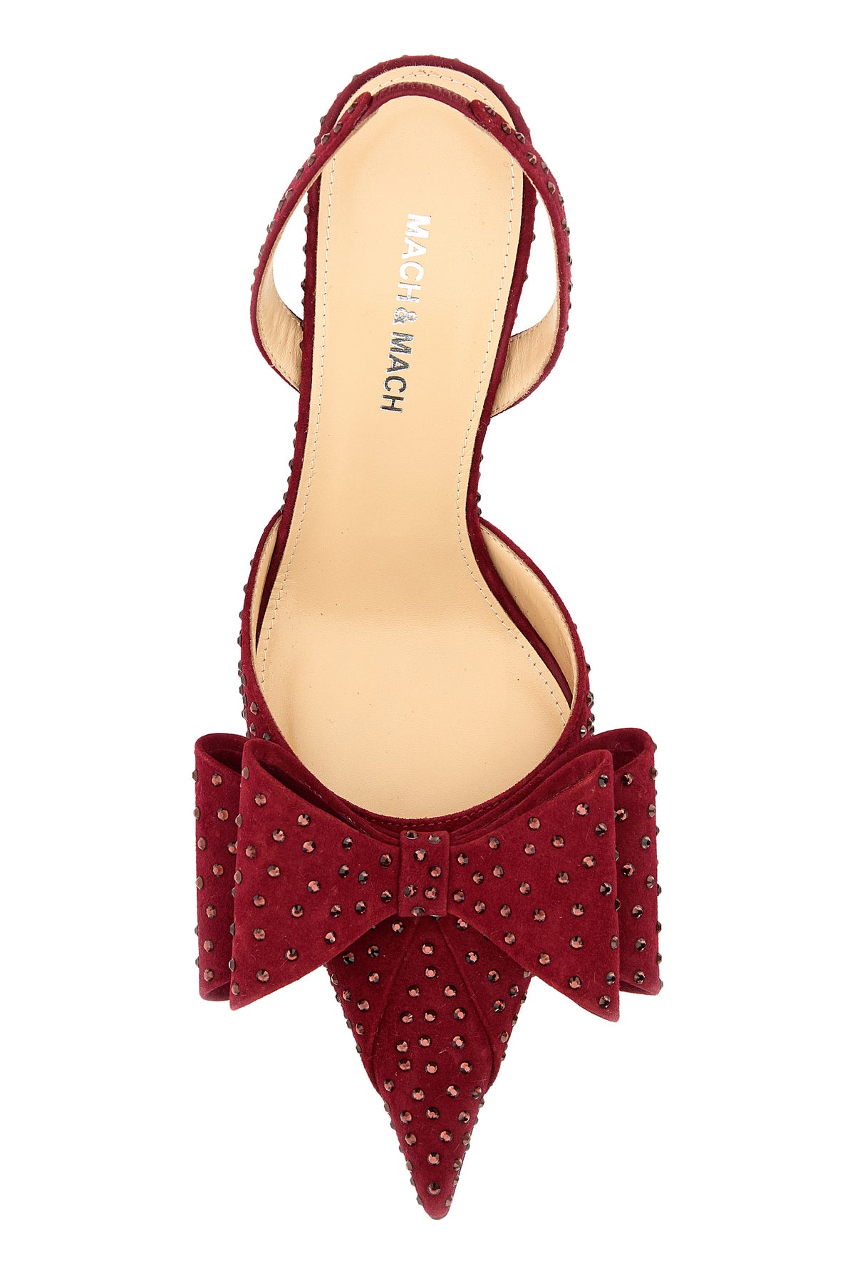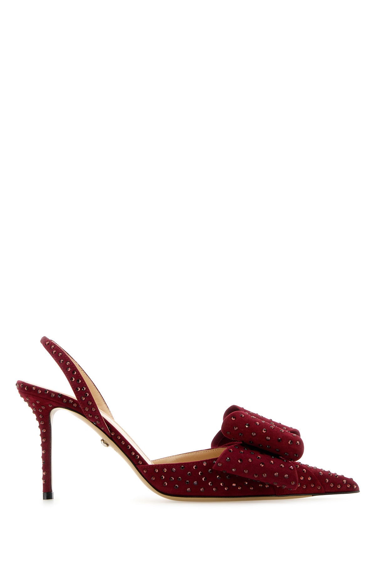 Slingback realizzate in pelle scamosciata con cristalli su tutta la superficie arricchite da fiocco decorativo in pelle scamosciata tonale sulla parte frontale.