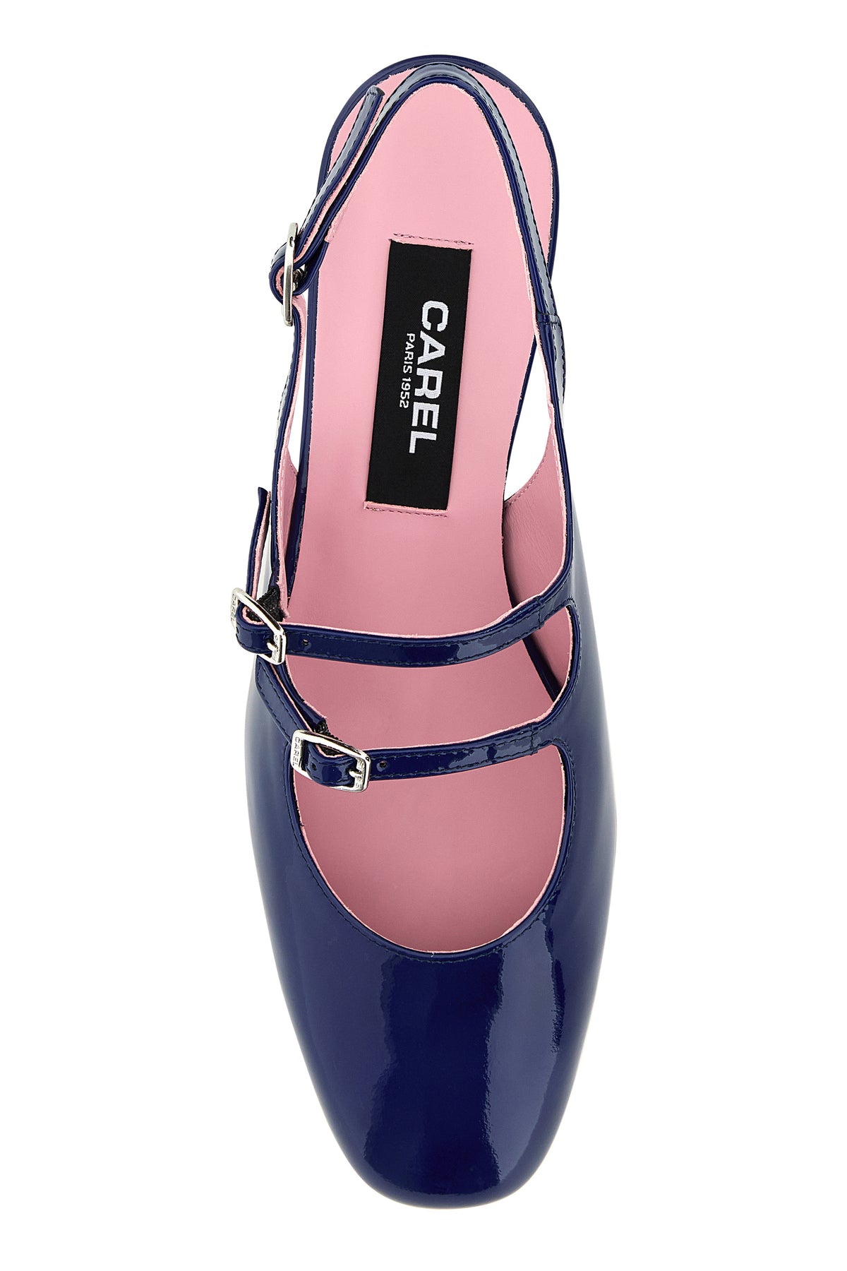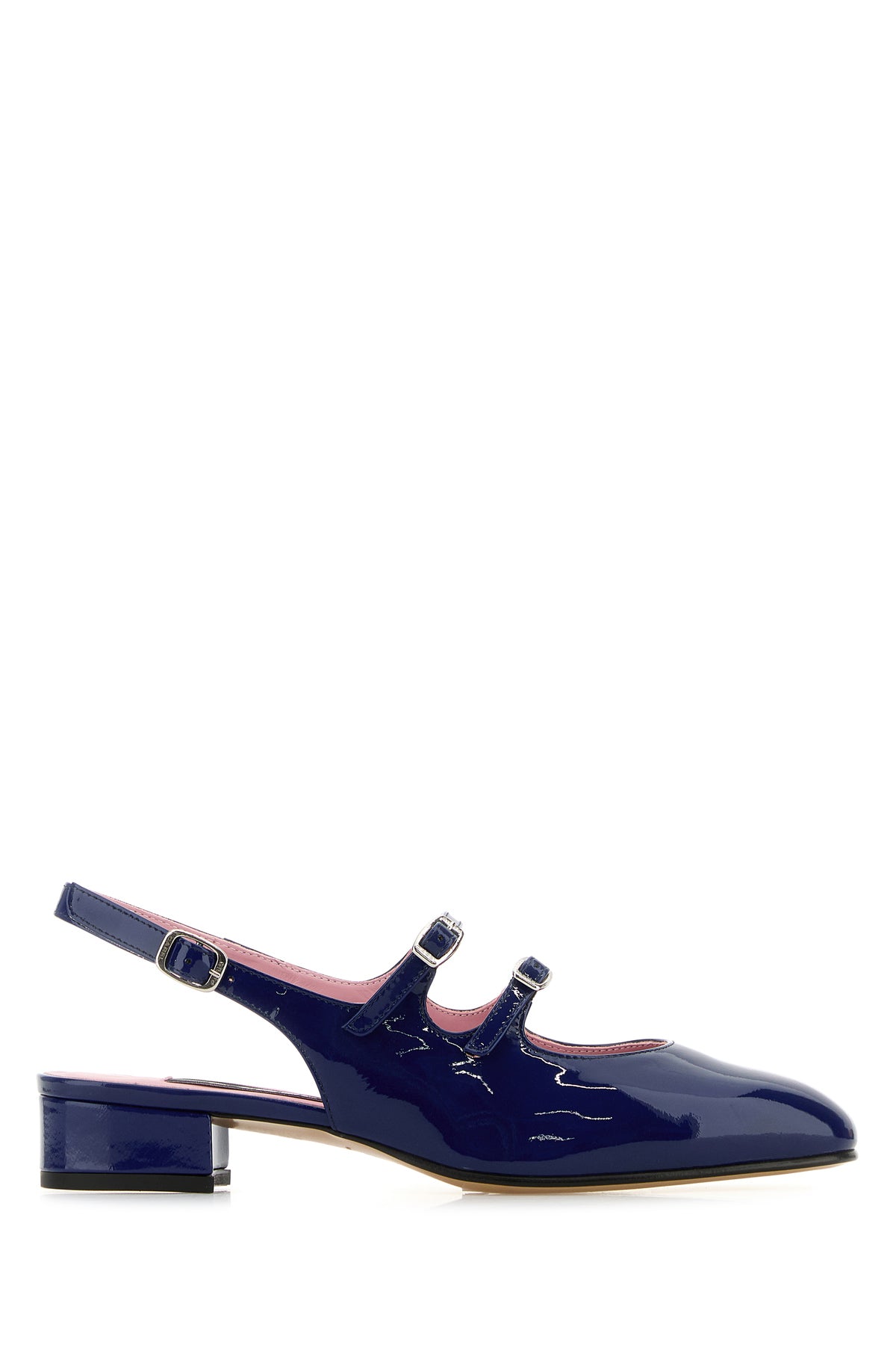 Scarpe con tacco realizzate in pelle verniciata arricchite da tacco spesso.