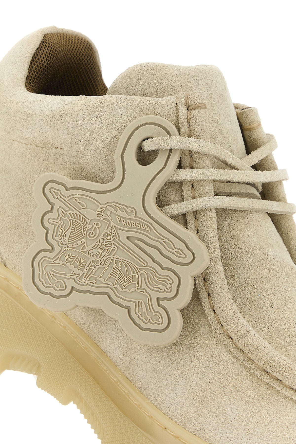 Scarpe stringate realizzate in pelle scamosciata arricchite da charm Cavaliere Equestre in gomma tonale sul lato.