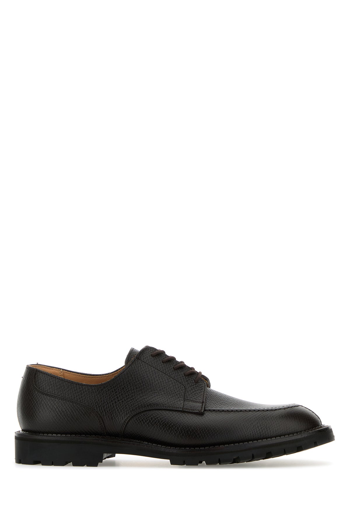 Scarpe stringate realizzate in pelle martellata.