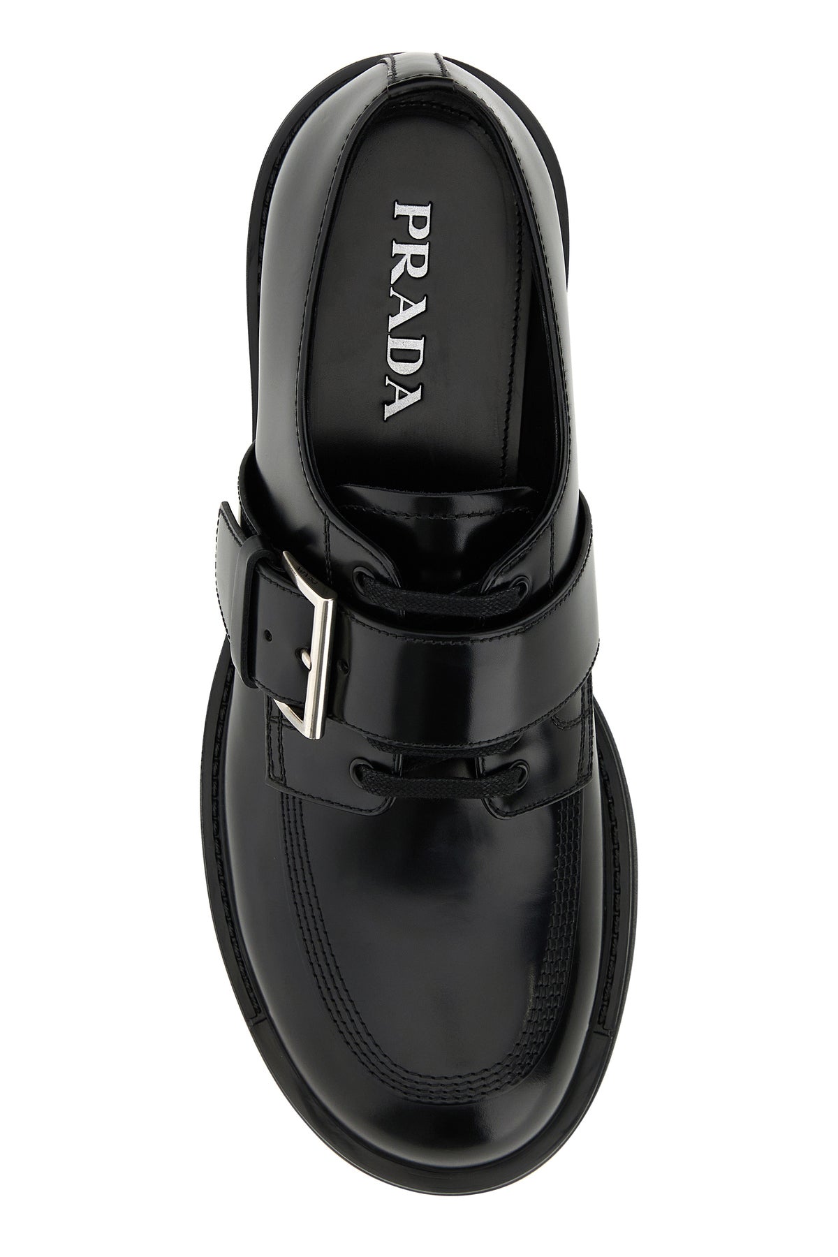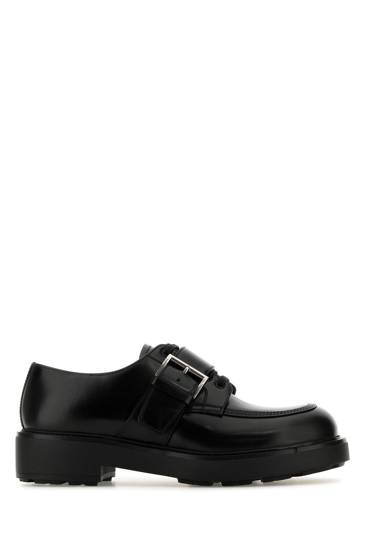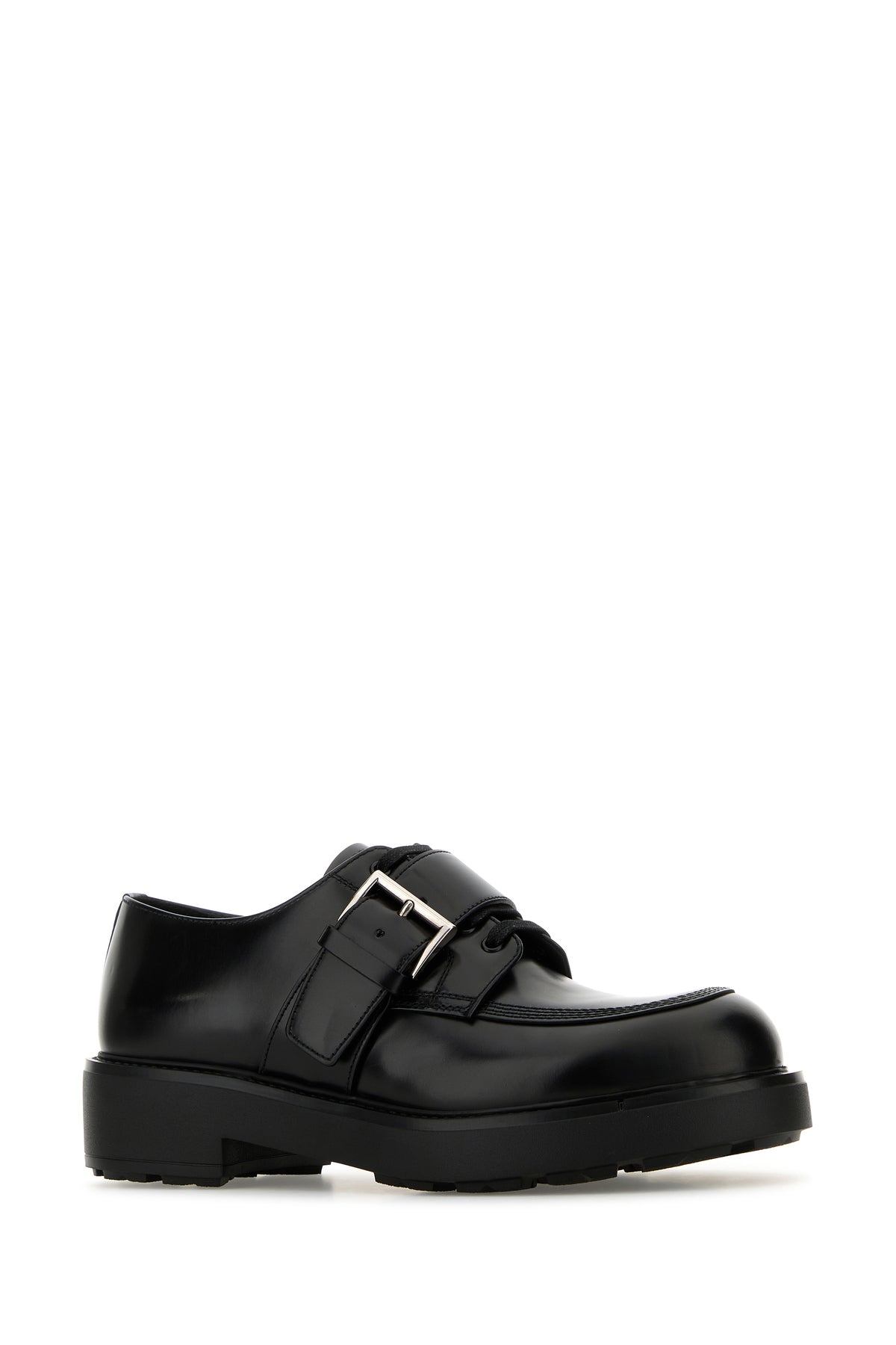 Scarpe stringate realizzate in pelle dal finish lucido arricchite da cinturino regolabile in pelle tonale sul collo del piede.
