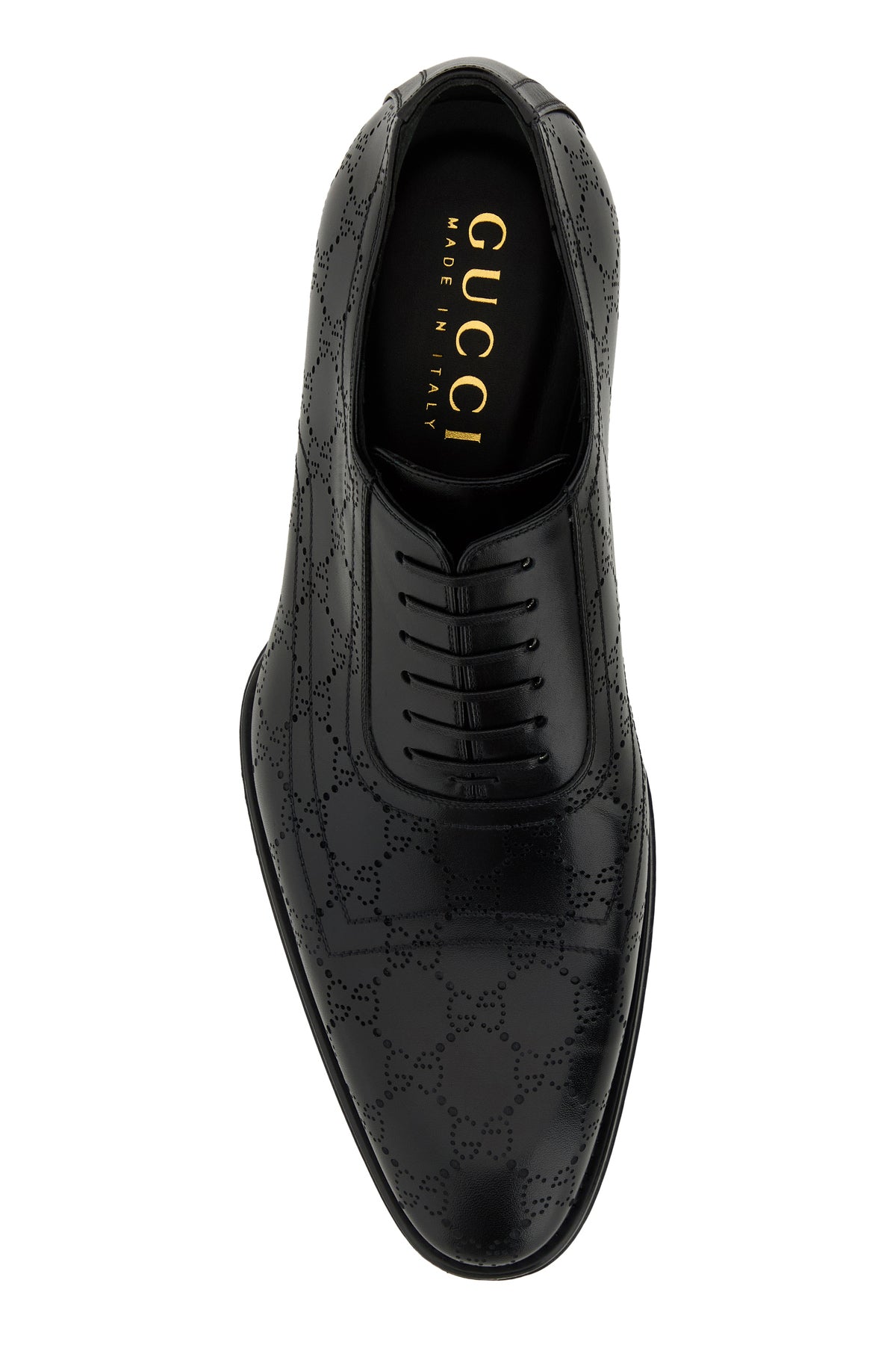 Scarpe stringate realizzate in pelle caratterizzate da motivo GG perforato su tutta la superficie.
