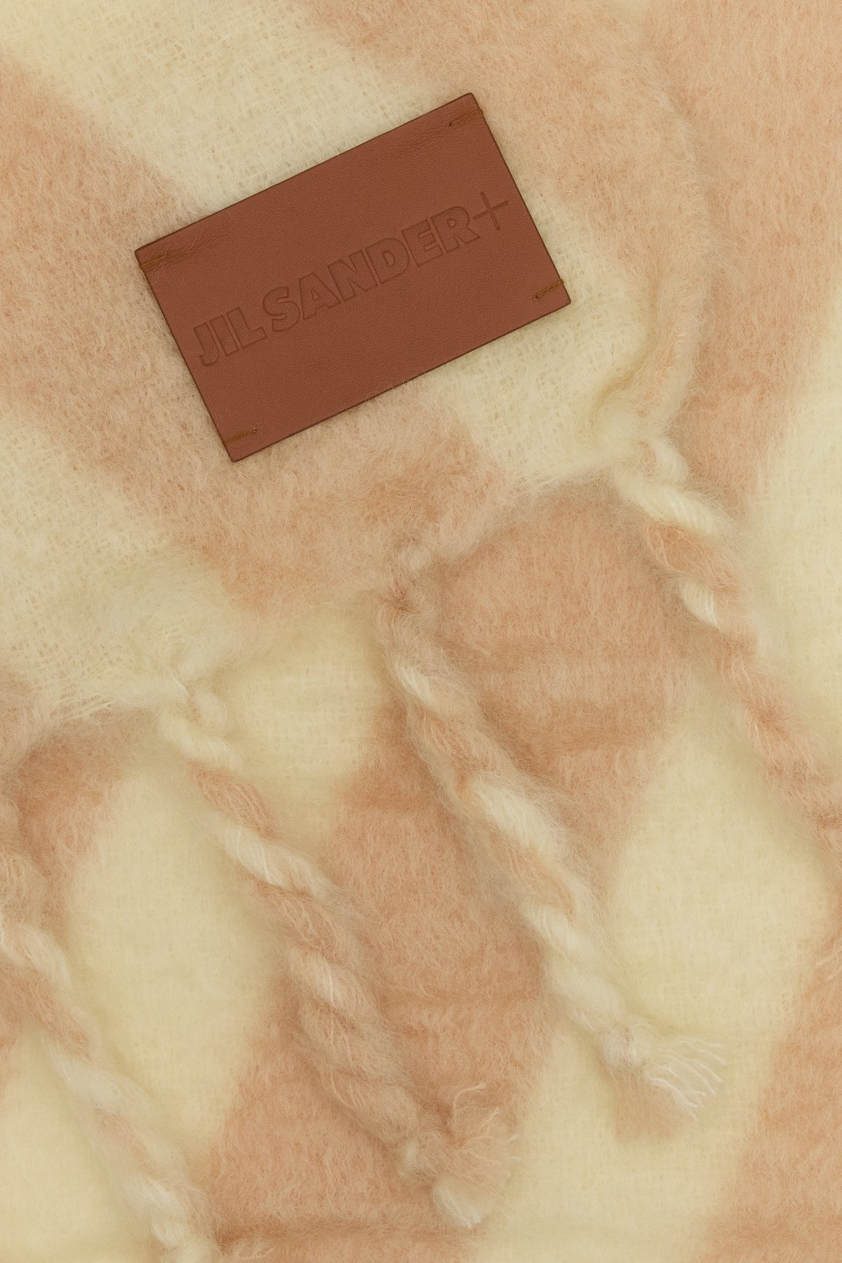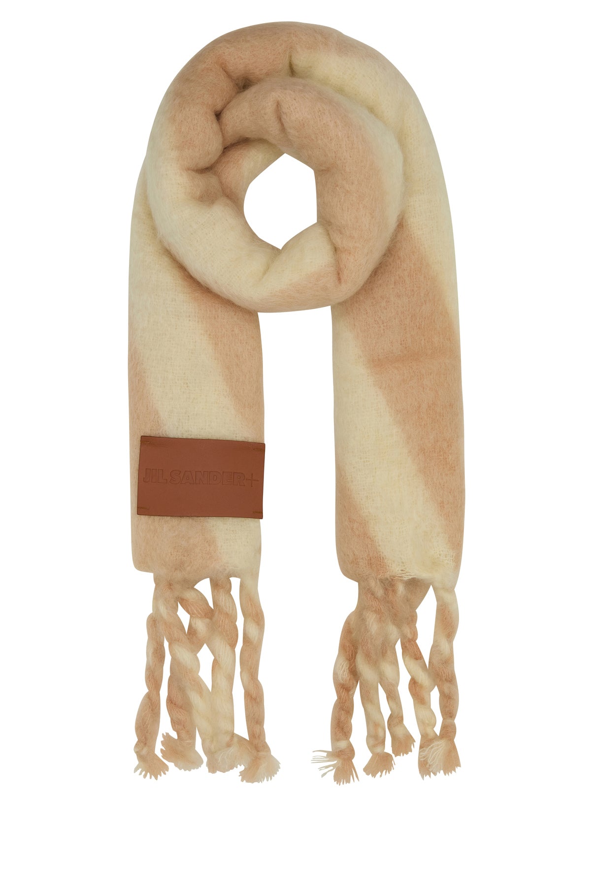 Maxi sciarpa realizzata in misto mohair caratterizzata da ricamo a righe su tutta la superficie arricchita da etichetta logata sulla parte frontale.