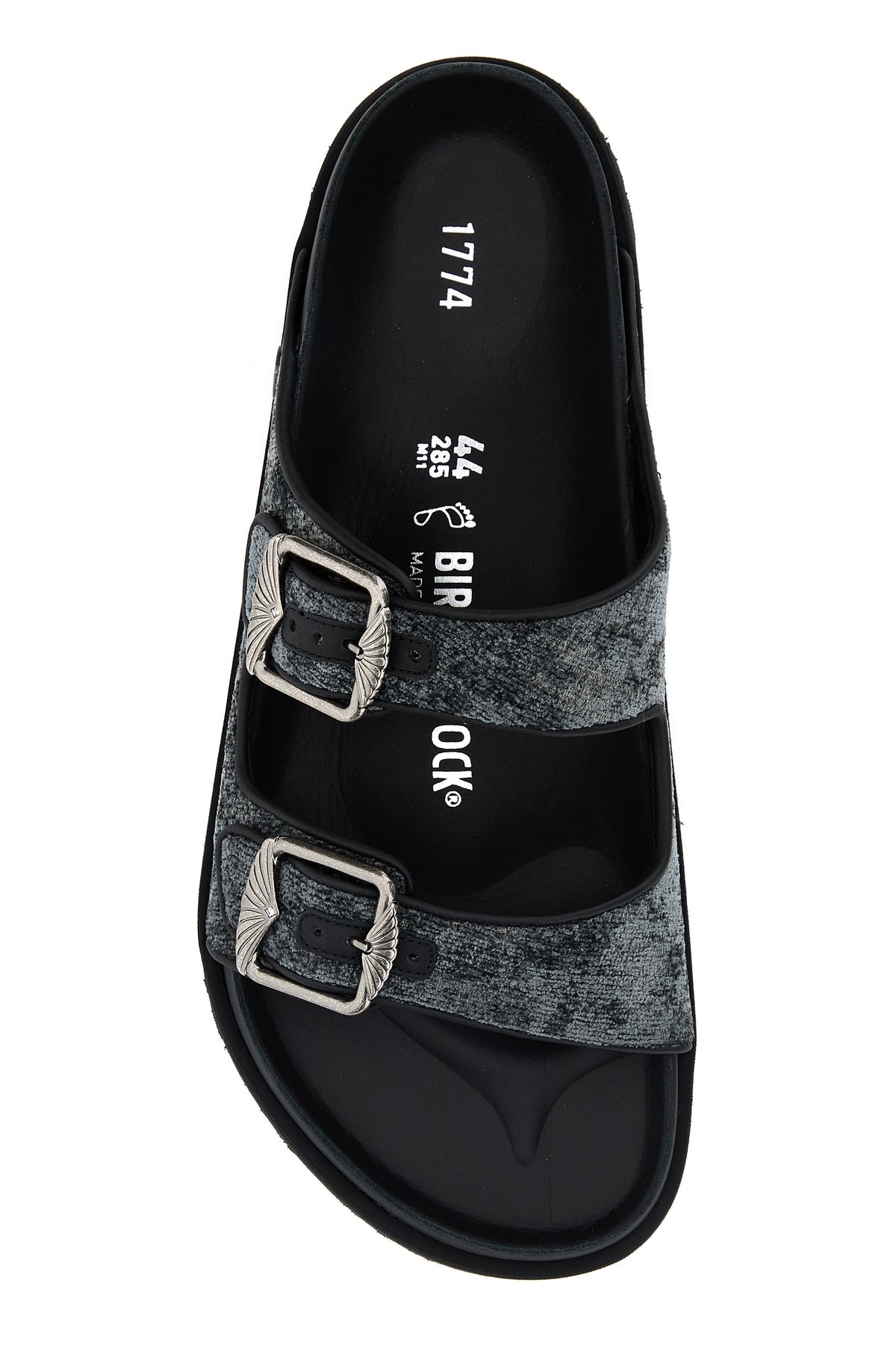 Slippers realizzate in velluto arricchite da dettaglio metallico logato sul lato.