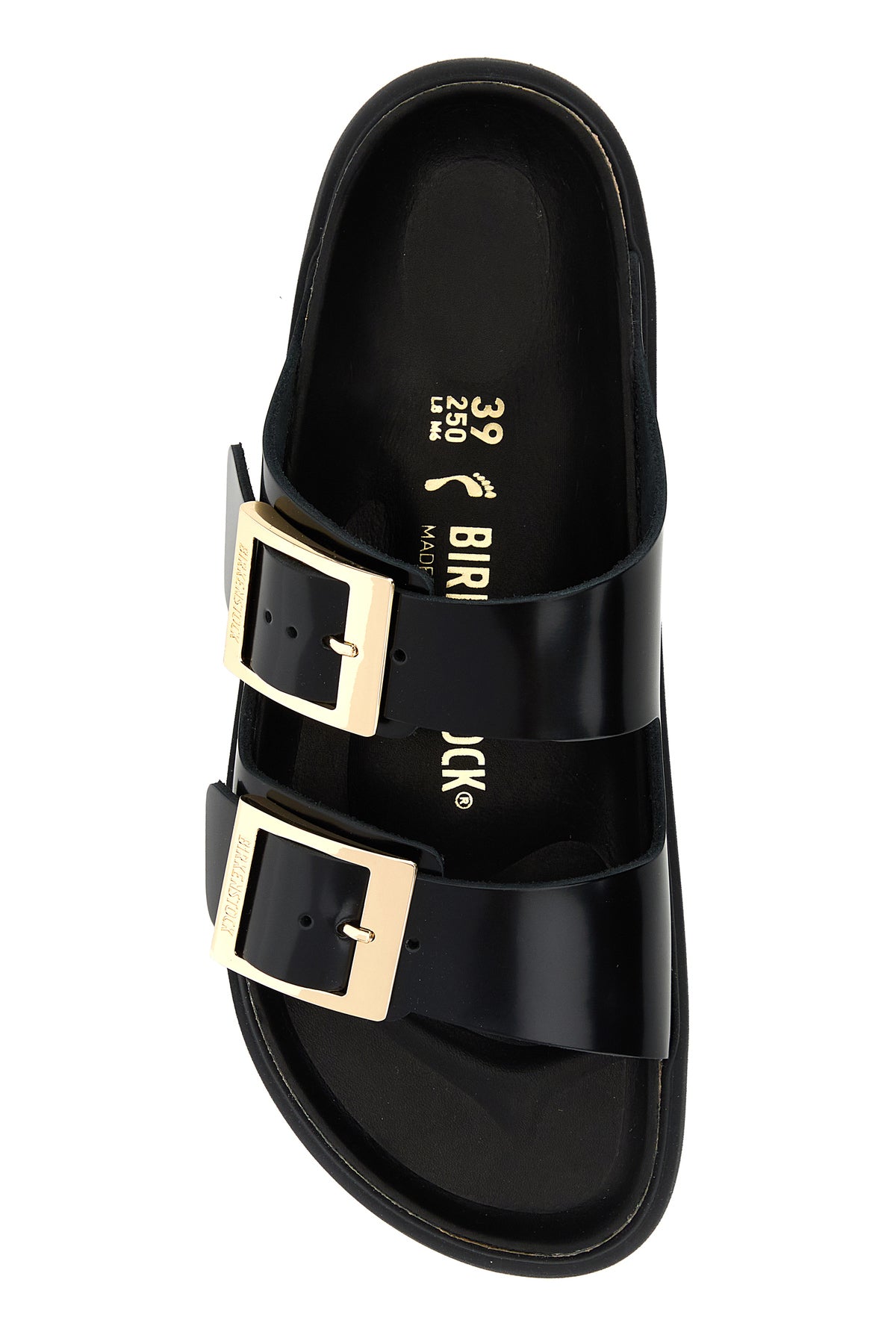 Slippers realizzate in pelle dal finish lucido caratterizzate da logo impresso sul lato.